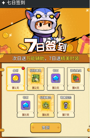 3:七日签到送万能辅助绿绮精灵,还会获得钻石,金币等奖励,签到满七天还会送赠送精美时装