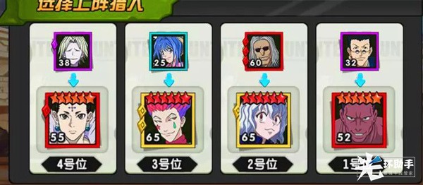 高觉醒的团长和猫女,40级左右的莫老五和雷欧力(不带卡)。尤匹堆抗暴、血防,库洛洛堆高暴击,西索堆高输出,这属于前期的搭配。用超级卡包中SS卡的巨大优势,在新区开始霸占各类资源。其它的S级角色,可以先放库房,比如桀诺,信长,甘舒等。