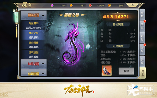 缥缈圣殿会掉落“魔音琴弦”、“龙腾之星”等多种蕴含灵力的宝物,使用这些宝物即可在灵宝界面解锁相应的灵宝,获得全方面的战力加成。另外还有一部分高阶灵宝需要玩家将前置灵宝强化到一定等级才能解锁。
