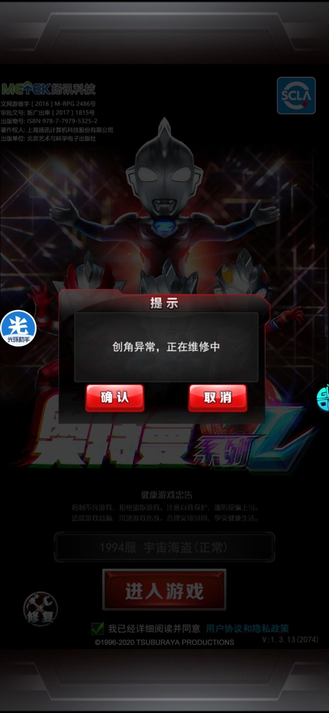 这是什么情况?我下果盘突然就这样子,怎么弄都登不上去。一直都是个创角异常。 点了修复也没用,一直玩的区可以登就开新区动不了。(那下面那个图是一直玩的那个区1941可以进。
