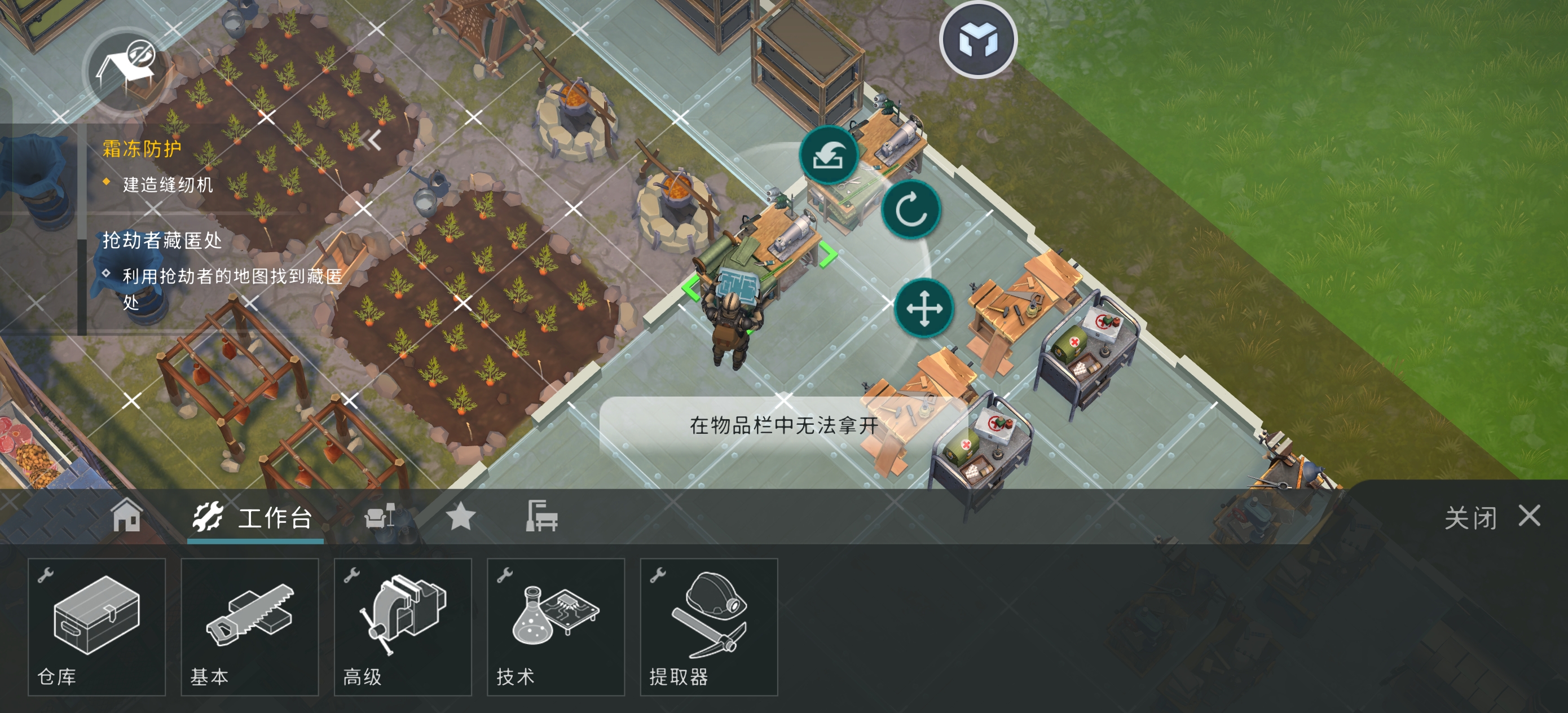 在任务开始之前就已经建好了两个二级缝纫机,任务开始后显示要建造缝纫机就想把之前建的挪回去,发现放不回去,见下图