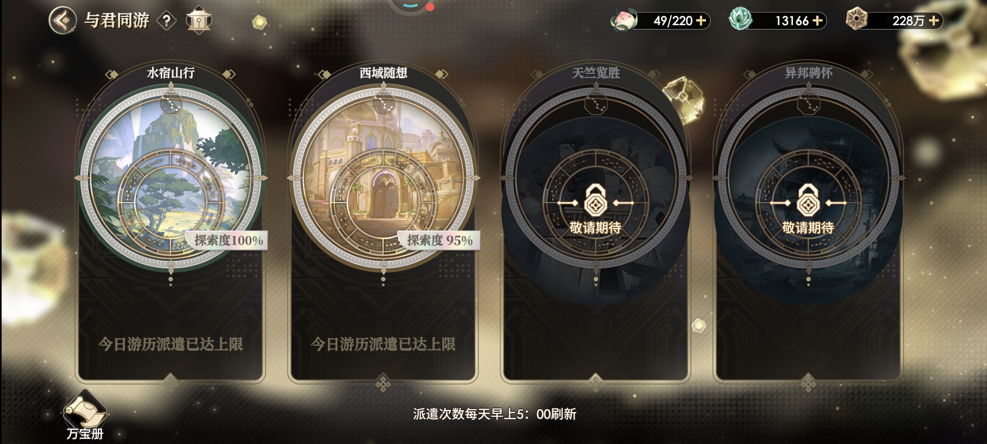 与君同游里 西域随想进度卡一星期95%了,怎么才能到100%?