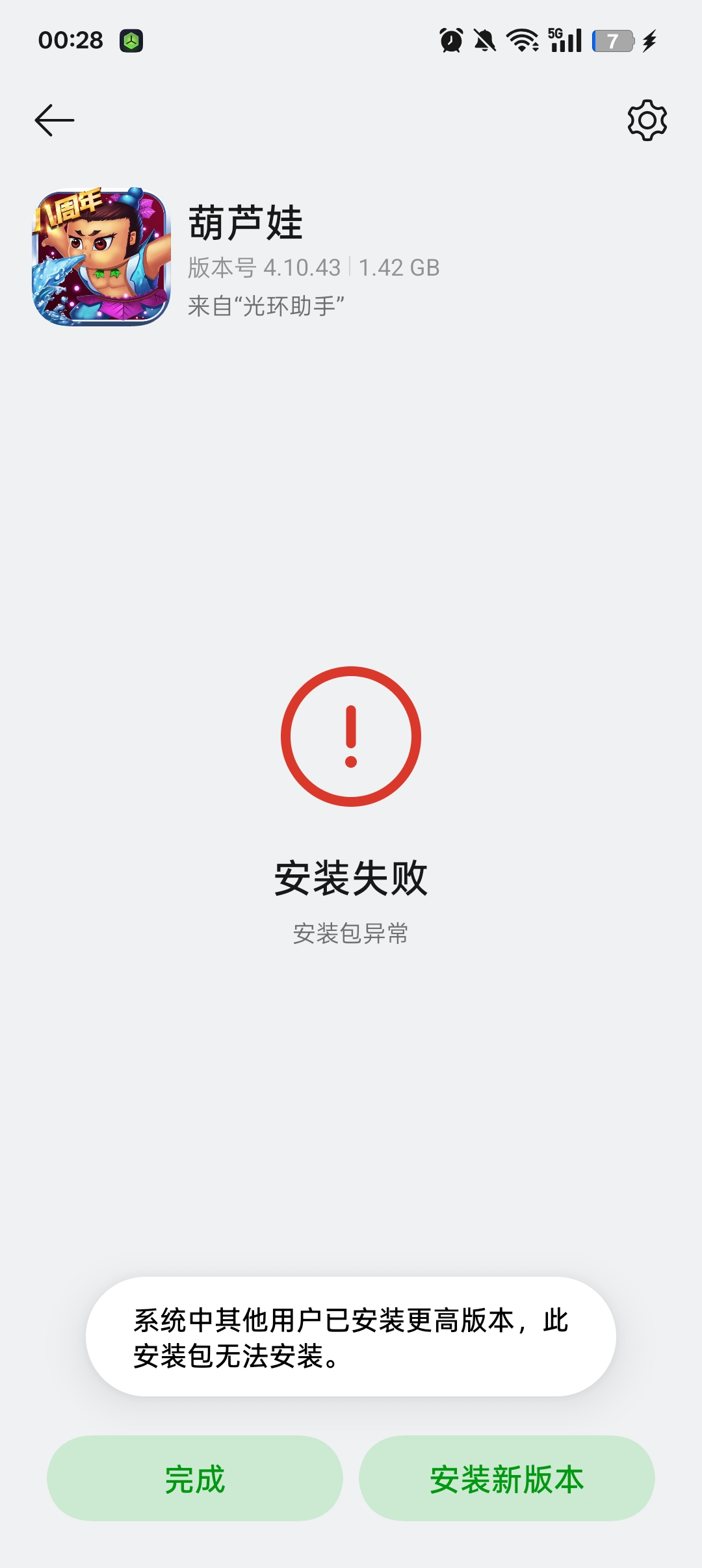 您好,请问您是玩哪个平台版本呢?如果是在应用商店和光环助手安装同个平台,一般无法同时安装哦;如果想体验加速版,可先卸载原版(应用商店下载),再前往光环助手内安装即可;如果您希望咱们更新游戏版本号,可搜索QQ号800177318与我们联系;感谢您对光环助手的支持