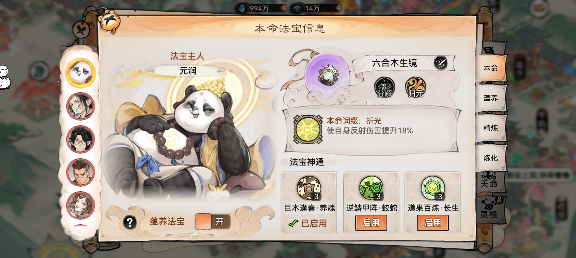 不是的,这个本命是提升反射伤害的,比如秦冰 紫灵这些有反射伤害才有用,你的熊猫🐼是没有用的。