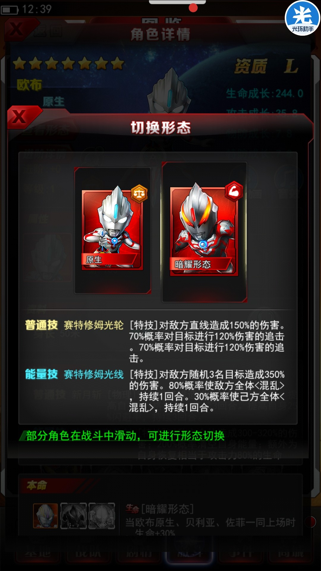 平a赛特修姆光轮对敌方直线造成150%的伤害。70%概率对目标进行120%伤害的追击。70%概率对目标进行120%,两次的伤害追击,虽然概率比较低,还是只能靠命中,但是补贴还是很高的,力量型角色都这样。