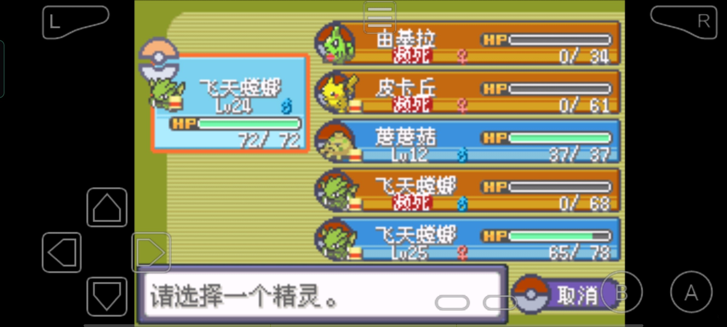 打完前两个,运气好,没被命中,这个命中了影响也不大,打m翼龙的时候换皮卡丘,然后存档,第一回合翼龙会用翅膀攻击,要是翼龙打皮卡丘没被麻痹,就回档回去让他重新打,直到被麻痹,麻痹后,换成蘑蘑菇存档,第二回合翼龙先手攻击,要是蘑蘑菇被打死就回档,要是被麻痹无法攻击,蘑蘑菇就放寄生种子,寄生种子完后存档,第三回合换成没有偷到道具的飞天螳螂,要是翼龙出手打死了就回档,要是被麻痹无法攻击,第四回合飞天螳螂就用虫咬(翼龙被麻痹了,所以螳螂比翼龙快),把剩饭偷了,偷完后就存档一下,第五回合,翼龙攻击就回档,不攻击就存档,第六回合同上,直到翼龙被寄生种子杀死。 这是我通完后的阵容