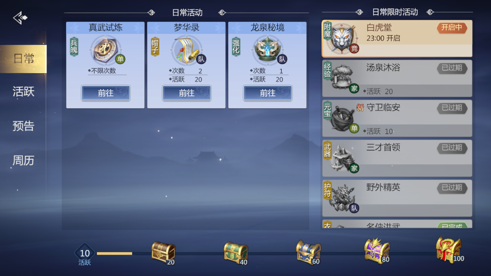 要知道,《剑侠世界3》的游戏内容是相当丰富的,日常限时活动里有玩家需要的附魔材料、经验、元宝、武器等相关内容,预告内容里又有官府通缉、野外精英、白虎堂等需要玩家在特定时刻上线的玩法,这些内容加在一起就会让大量消耗玩家的精力和时间,而护法招募这样的抽卡玩法会造成部分玩家游戏体验的缺失。