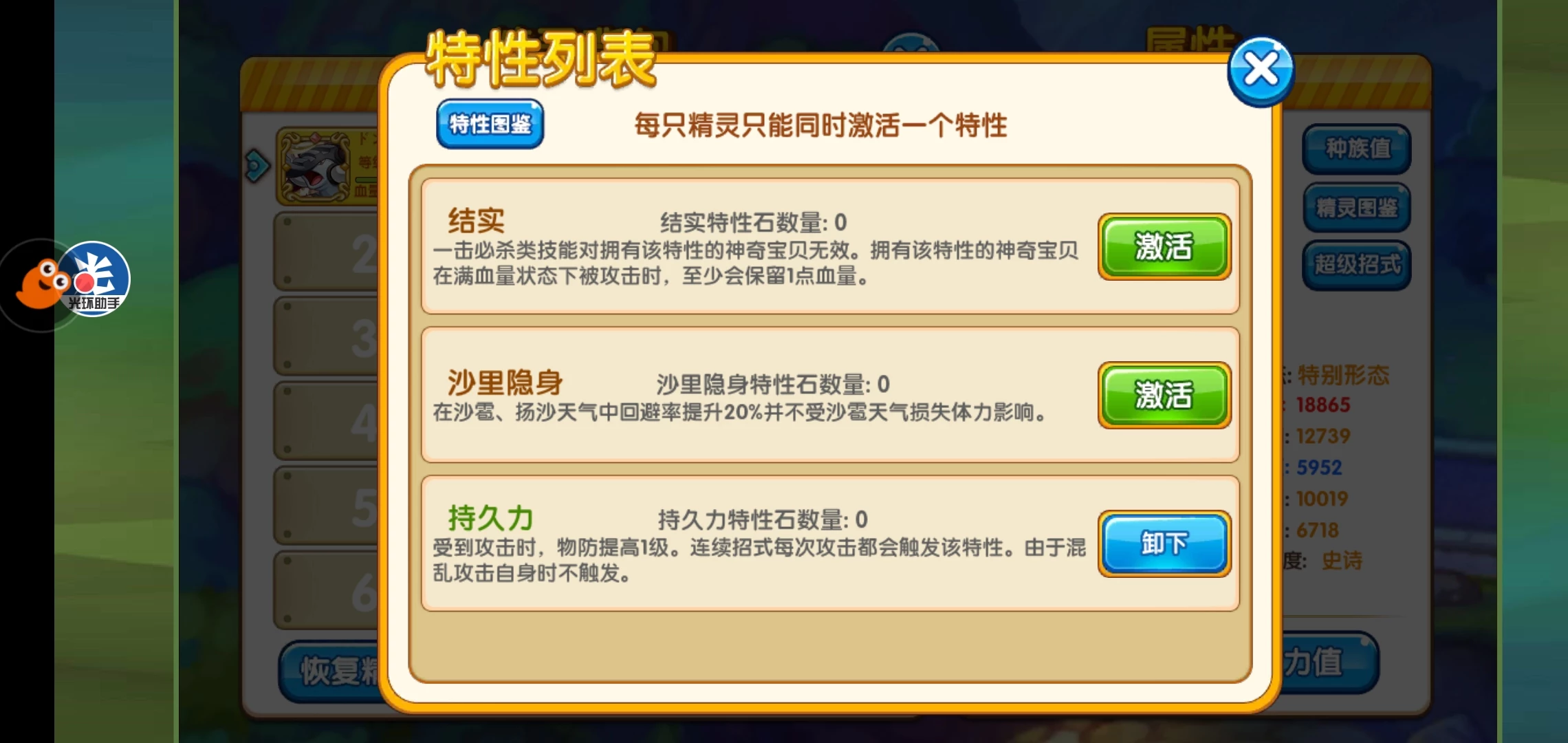 特性有三个,结实、沙暴、持久力,这里我们主要使用它的持久力特性。