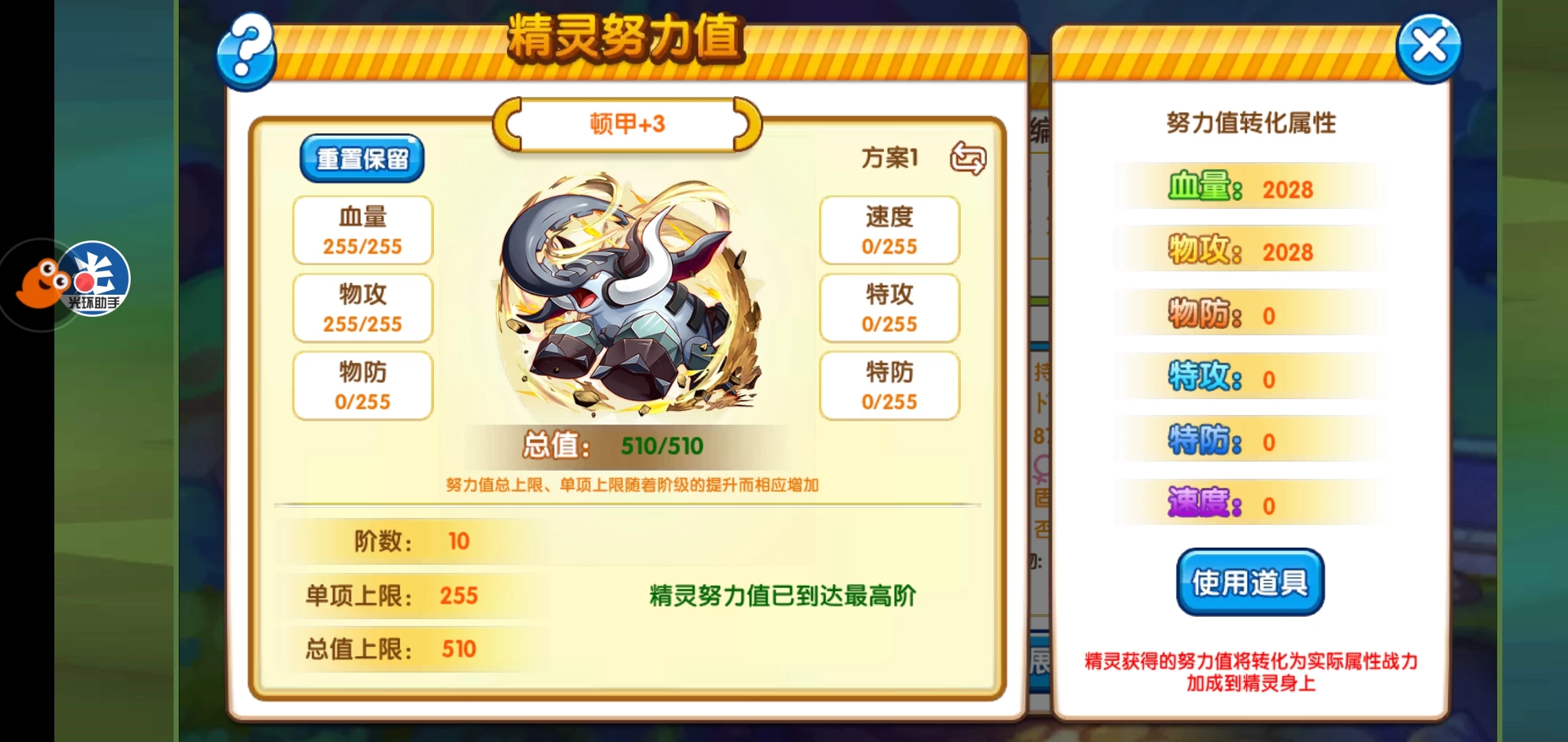 性格和努力选择:固执/淘气(血量+物攻/物防)