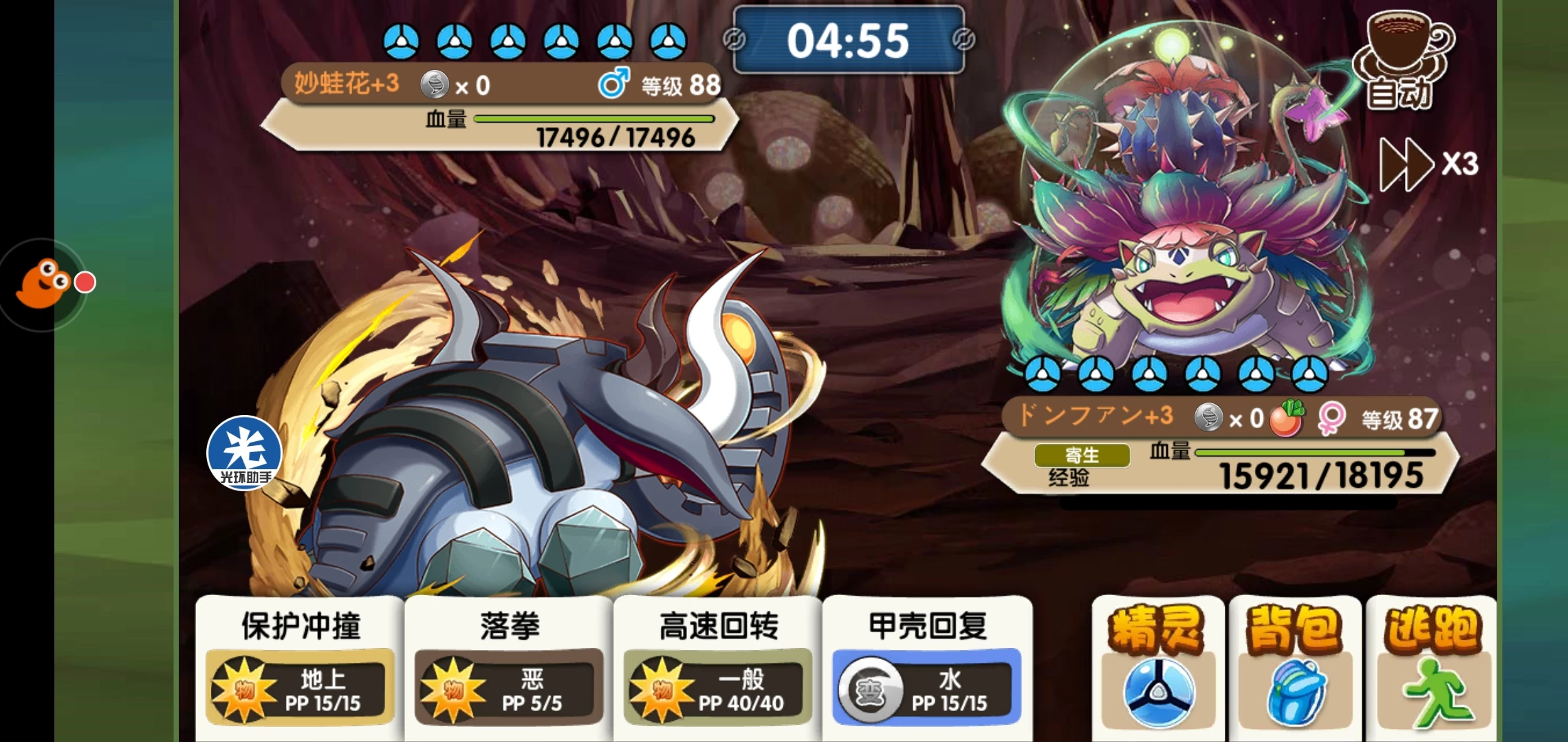 配招2:甲壳恢复+集气+地震/保护冲撞/泰山压顶/冰粒/蛮力/种子爆弹/毒刺/嬉闹/飞跳+珍藏