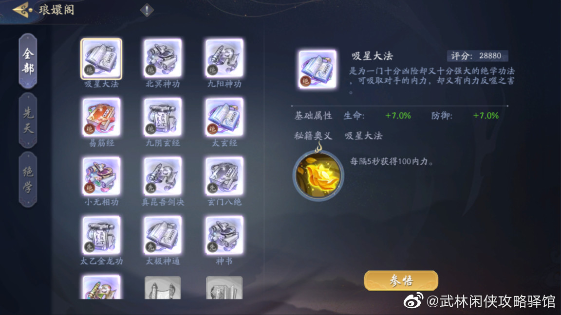 另一类是先天类秘籍,先天类秘籍相较于绝学更加灵活