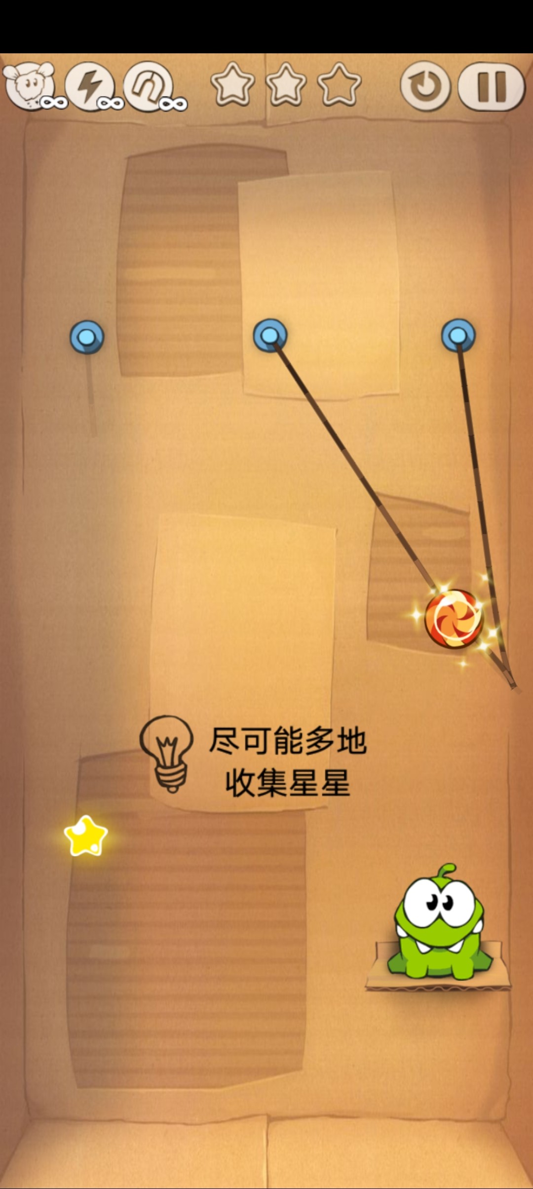 在这款游戏中我们将利用物理原理来让小怪兽吃到糖果,游戏关卡中有许多新奇的道具使用