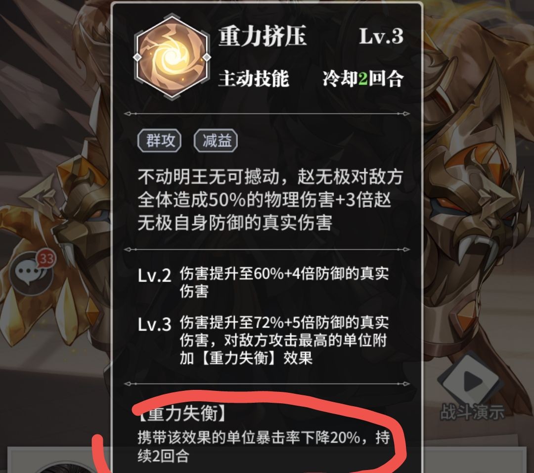 总结:赵无极的速度要求并非完全超越对方,而是仅仅超越对方C位,限制对方的输出,如不刻意培养速度,对方C位先出手,重力挤压就基本上是一个毫无意义的技能。