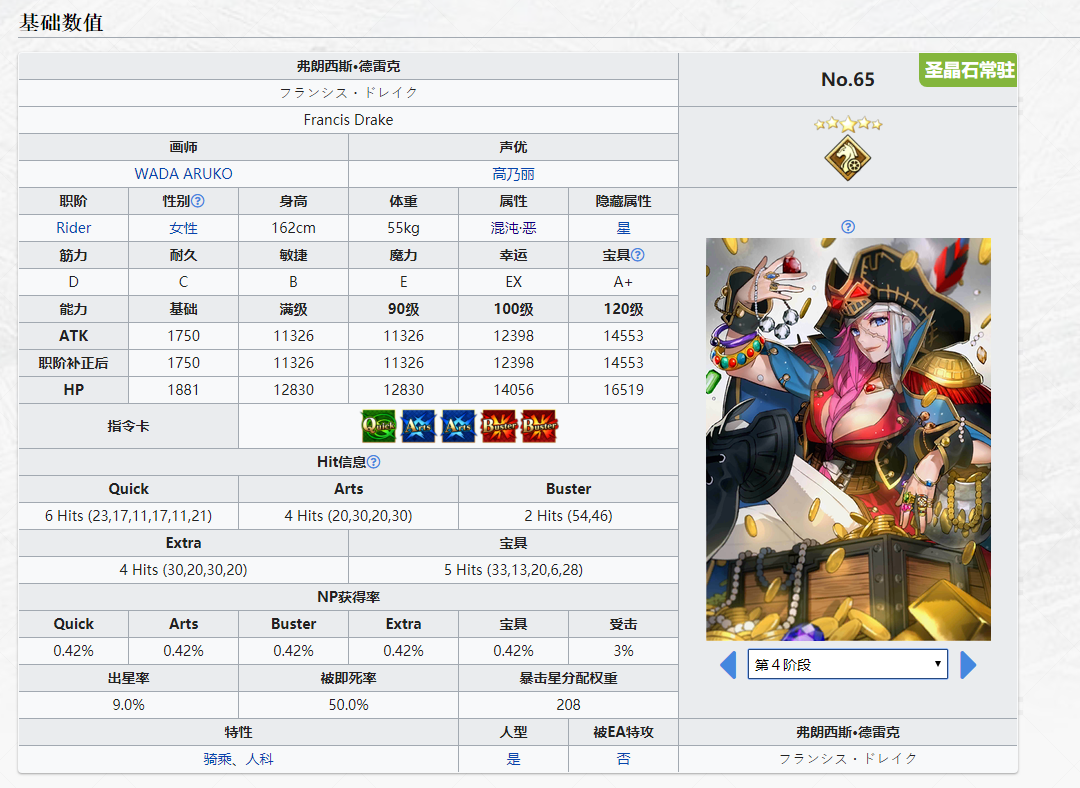 在FGO是第一个五星骑阶从者,外号“船长”,FGO元老从者,开服落地的时候强度是非常高的骑阶光炮,哪怕放到现在这个版本,依旧是一个很好用的五星红卡骑阶光炮,并没有因为版本更新而慢慢被淘汰,更何况未来会实装红卡拐杀狐、奥伯龙,到时船长的发挥就更加好用了,下面就来评测一下FGO这个元老骑阶五星从者。