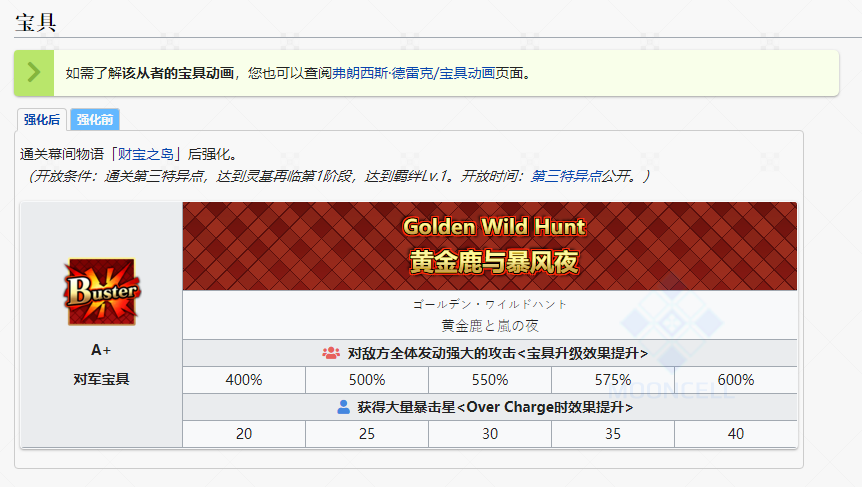 没经过技能本强化的二技能就是一个普通的NP率,搭配船长两张4hits的蓝卡,可以非常有效的增加船长的NP回收,之后技能本强化增加20%红魔放还可以更进一步提升船长的宝具伤害,三回合的无视防御状态还可以应对高额防御的敌人。