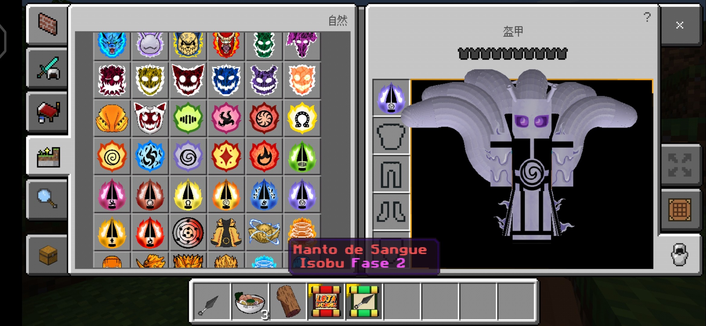 总评:这个模组还原的非常到位而且酷炫又拉风,有许多新玩家,新鲜度非常高,而且加入了忍术、忍器等等玩法十足,增加了冒险感,唯一美中不足的是没有介绍/引导,而且都是英文,导致许多人看不懂、玩不懂,比较劝退一些玩家;总体来说这是很推荐玩上一把的,毕竟这款模组的耐玩性很高。