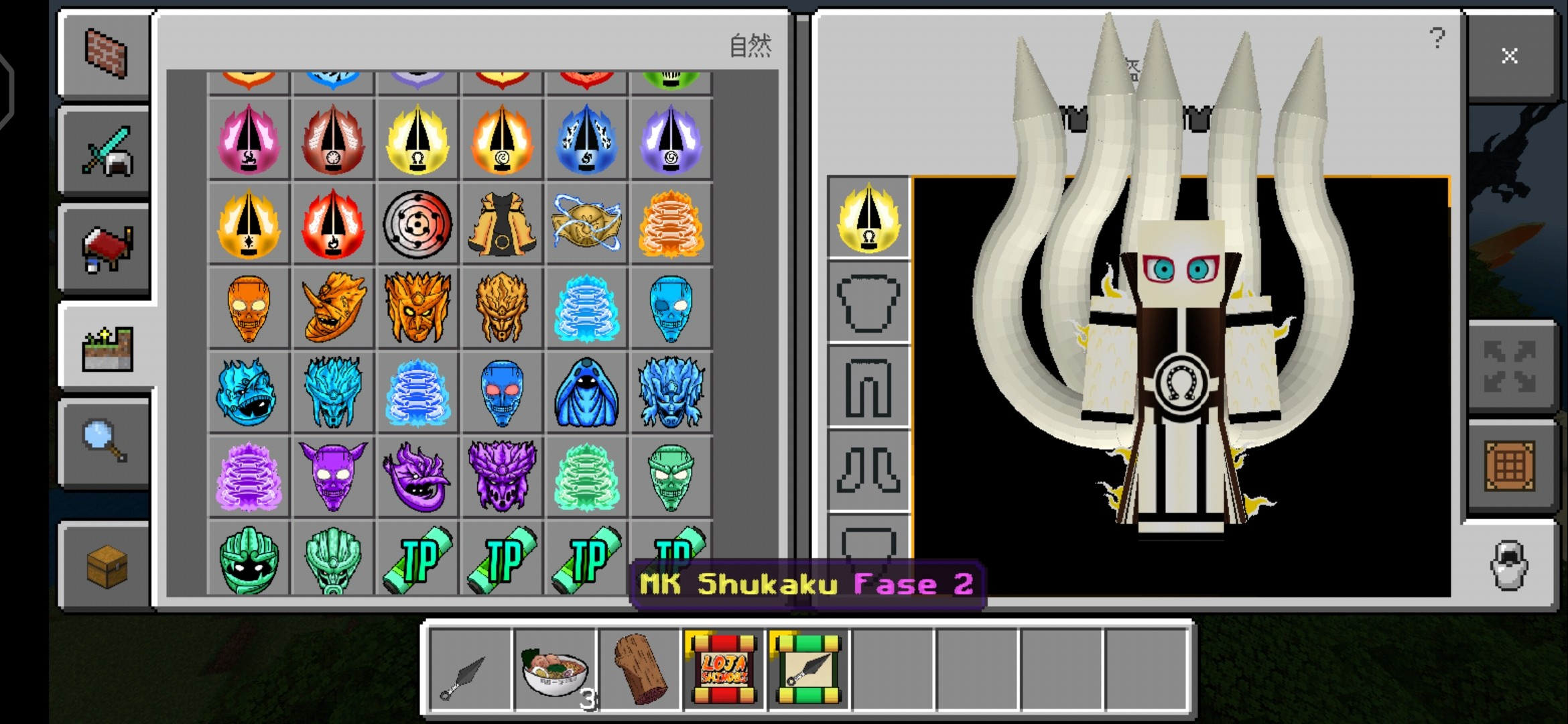 除了变身外还用入了其他属于火影功能性的一些小道具,有的可以合成变身,有的可以当货币等等,另外我们的怪兽蛋也得到了扩展你可以通过对应的怪物蛋放出各式各样的boss