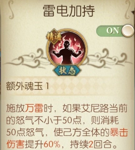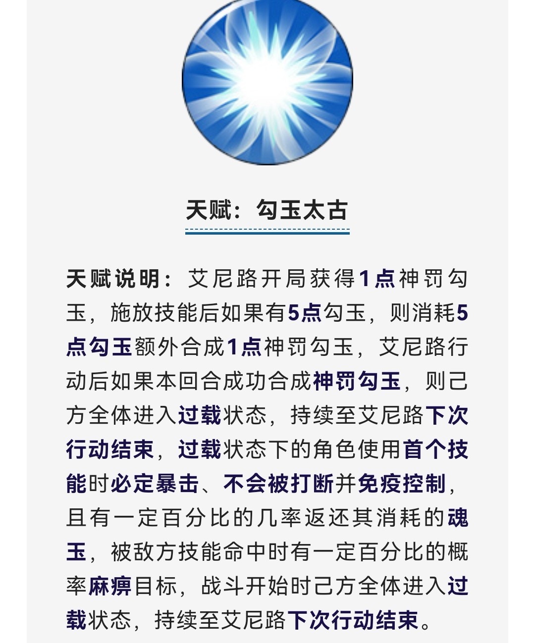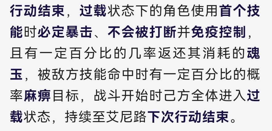可以让过载状态的人,第1个技能不消耗魂玉,这就相当于每人都有一套游侠,这样不管是剧情还是天梯,角色技能搭配都有很大的帮助。