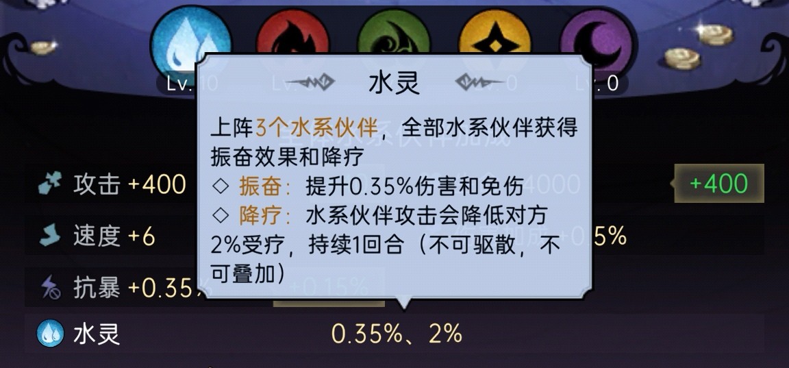 升哪一系就只给哪一系的卡牌增加属性。这里推荐大家优先点主C的系,其他系先不点。比如四保一白雪,优先点水系;白马阿里优先点光系。