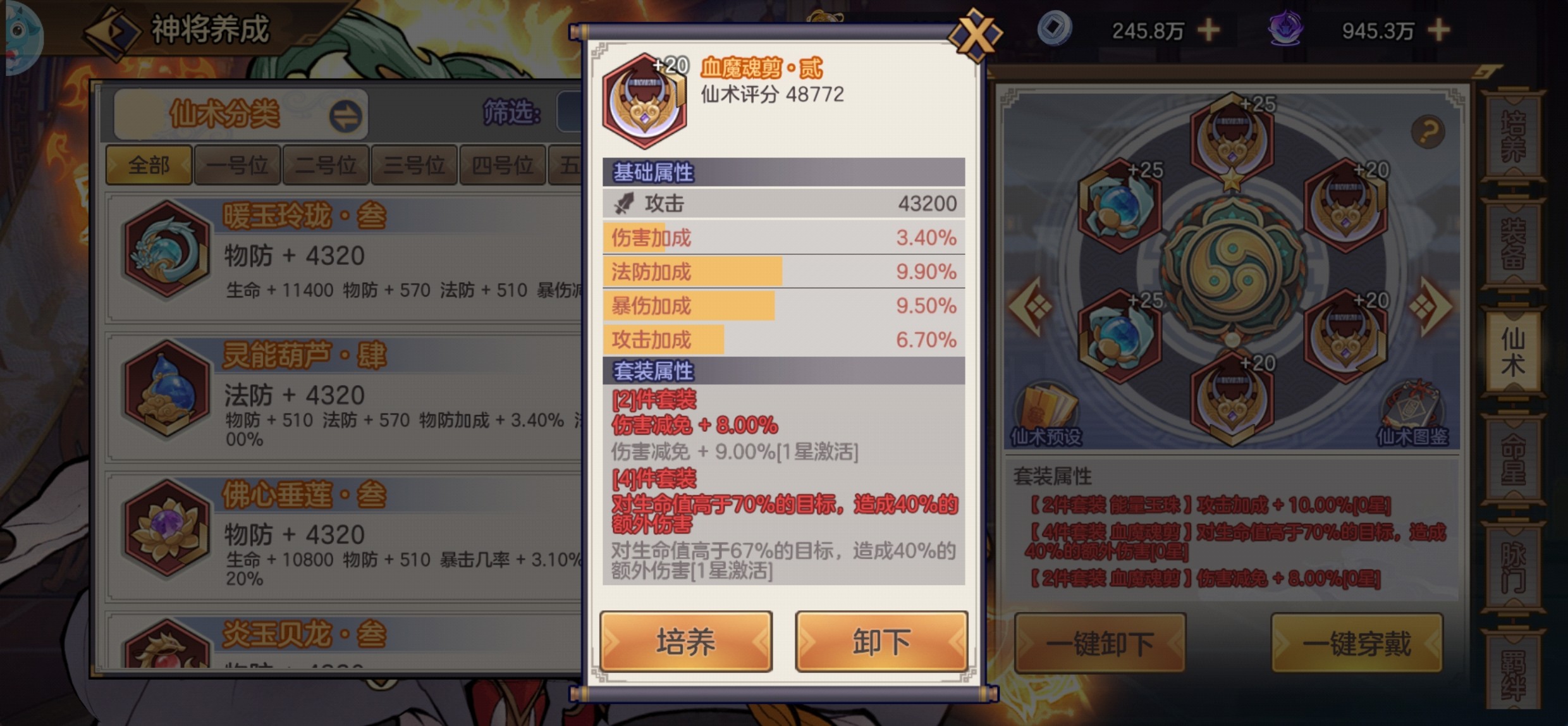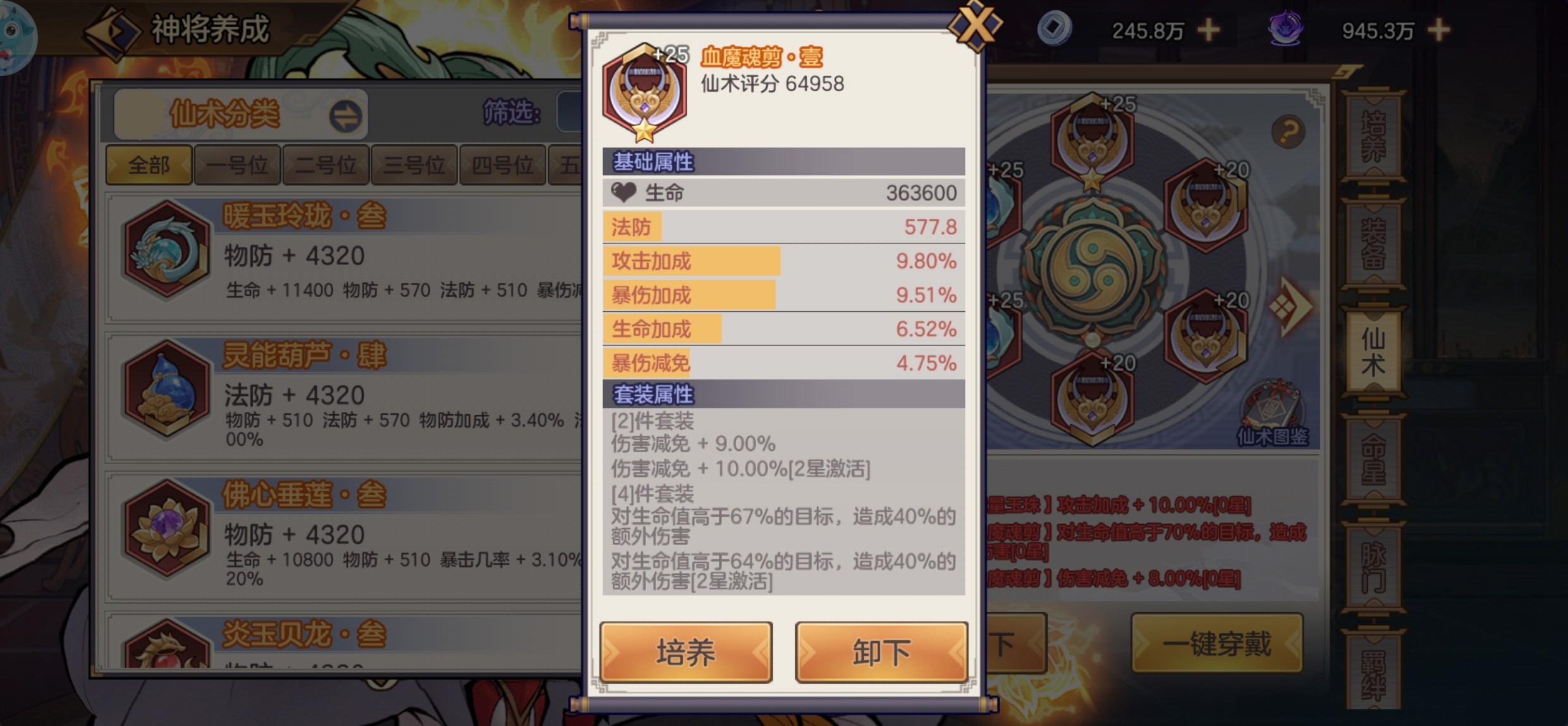 仙术升星:需要相同部位仙术,比如1号位对1号位,此外还需要其他随机部位的仙术。类似神将升星系统那样。