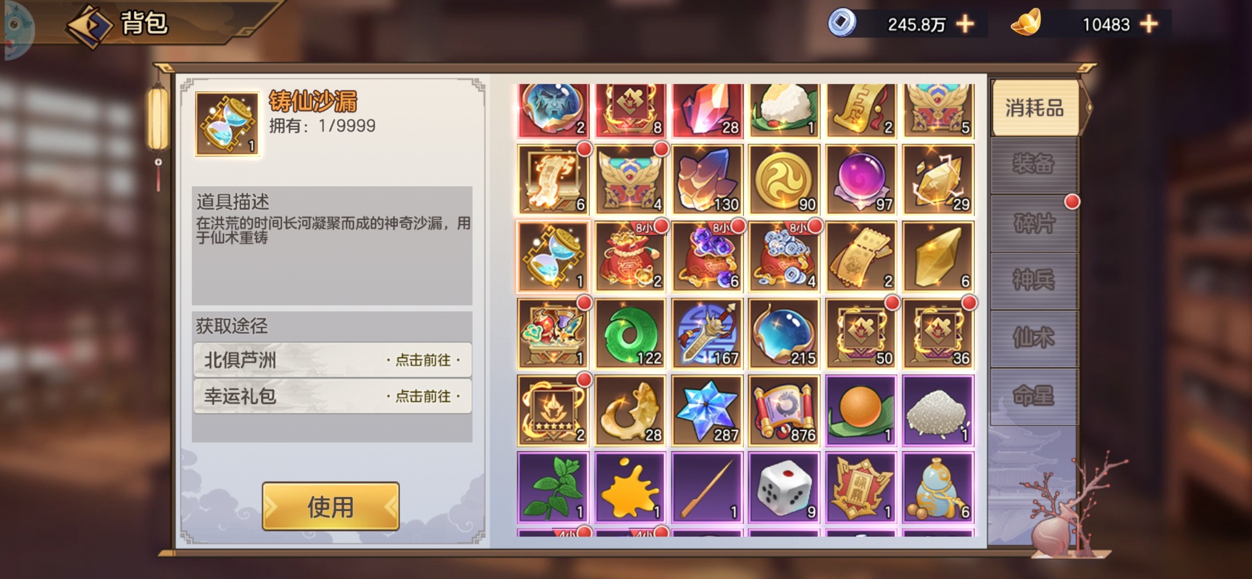 总结:目前升星还是比较难的,只能慢慢养成。后期还是会满的。希望后期策划也会加大仙术的获取力度。