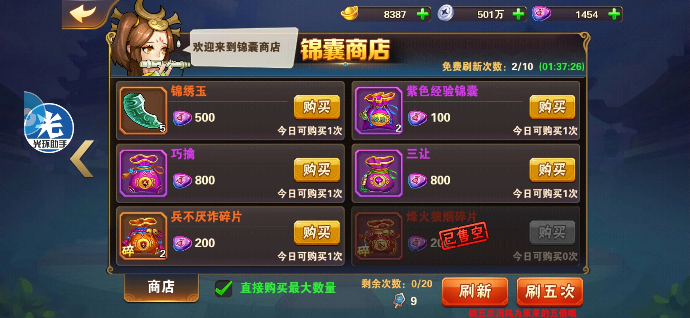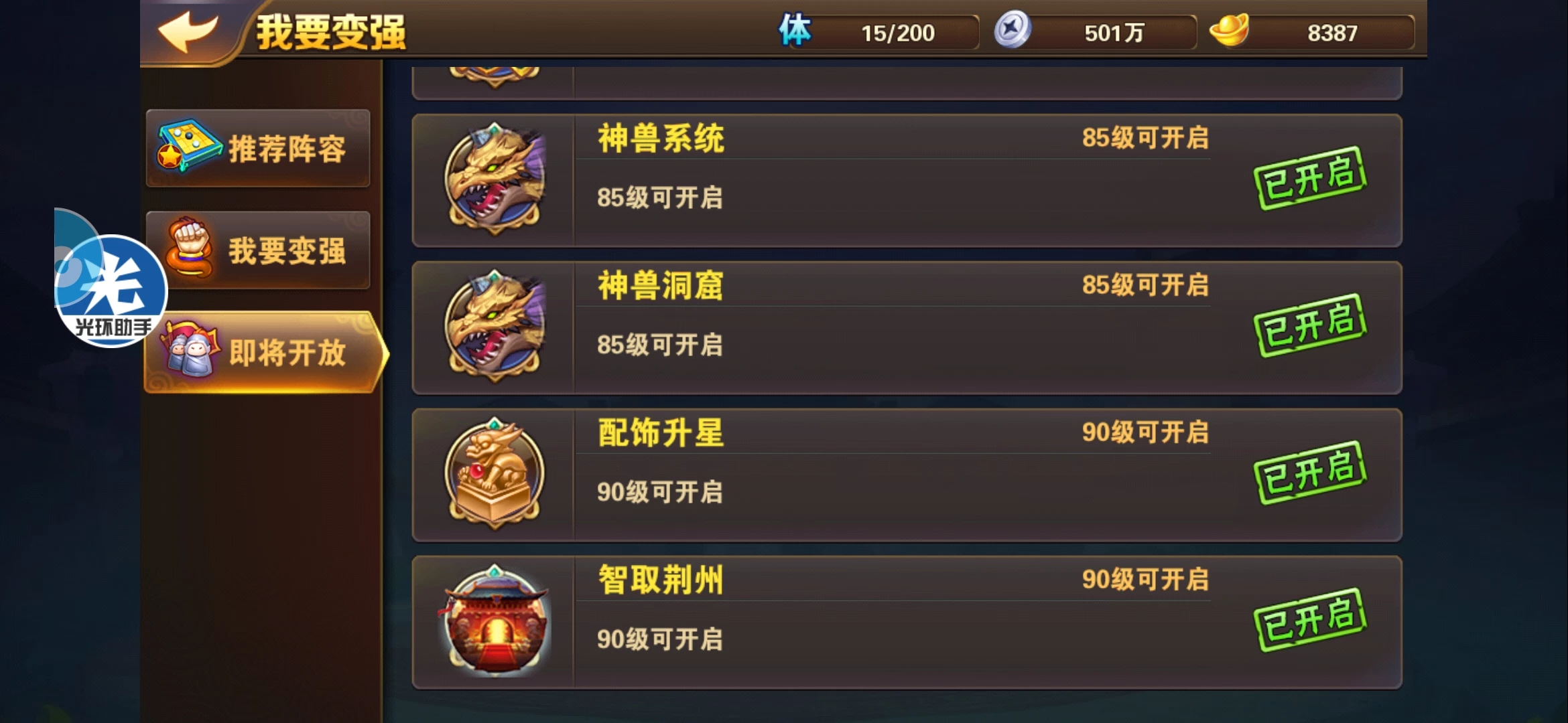第2个开通的功能就是锦囊。