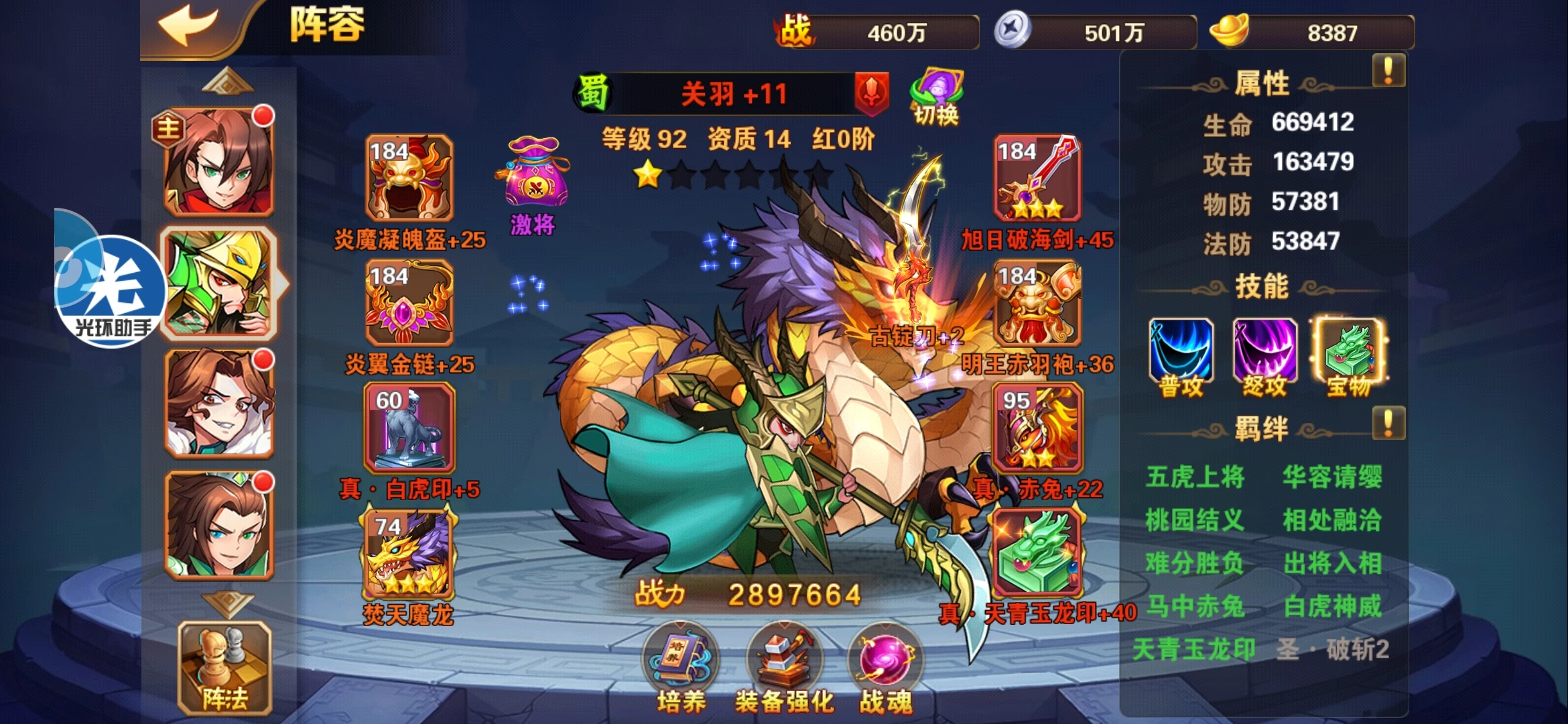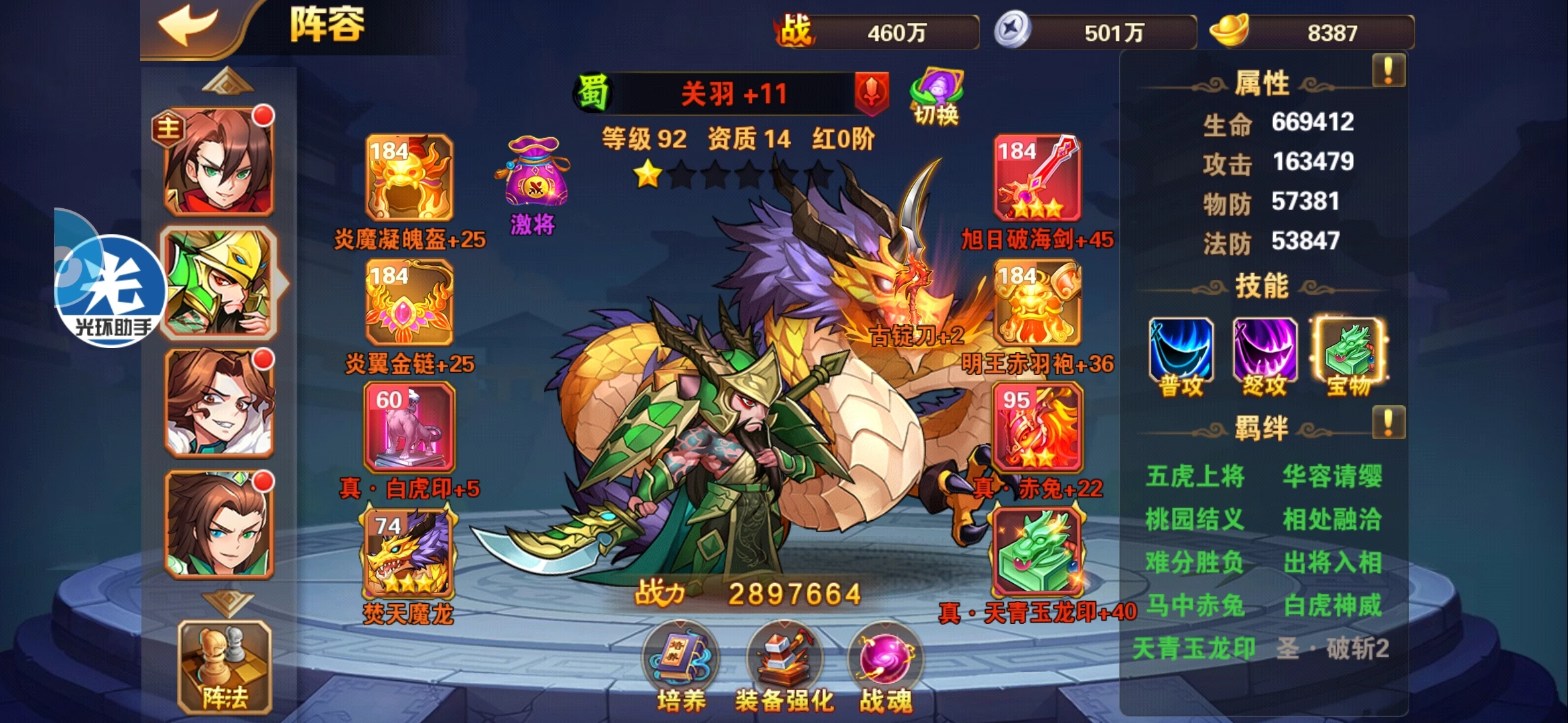 如上图里面带的激将就是紫色的锦囊,到后面我们要用的锦囊肯定都是红色的,像烽火狼烟。在得到烽火狼烟之前,我们可以先用兵贵神速或者是激将来过渡一下,然后就等着烽火狼烟出来就可以了。那烽火狼烟也可以待很长一段时间,到了后面需要用别的锦囊的时候,再通过置换的功能转过去就可以了。