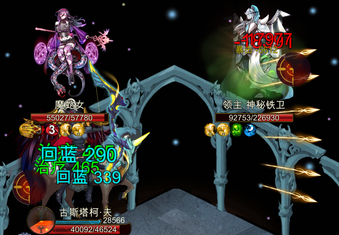 另外战斗中,上中下各路的角色/战宠/敌人主要攻击相同路的敌人,在自身或战宠生命所剩无几时,可以通过上下移动切换位置,转移敌人的攻击目标。