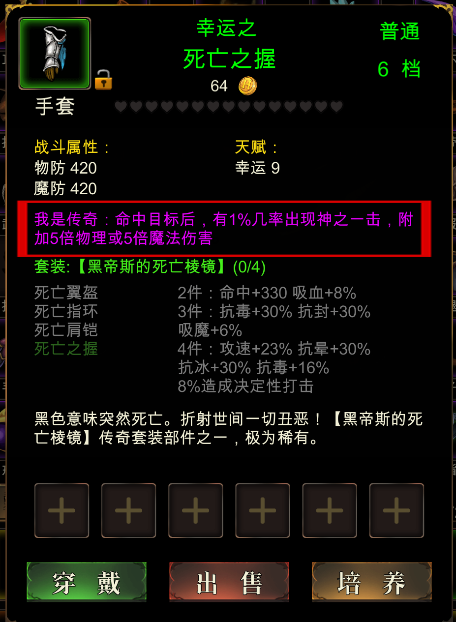 部分援助也拥有和装备相同的效果,援助出战后为对应装备位置腾出空间,更便于传奇属性的搭配。
