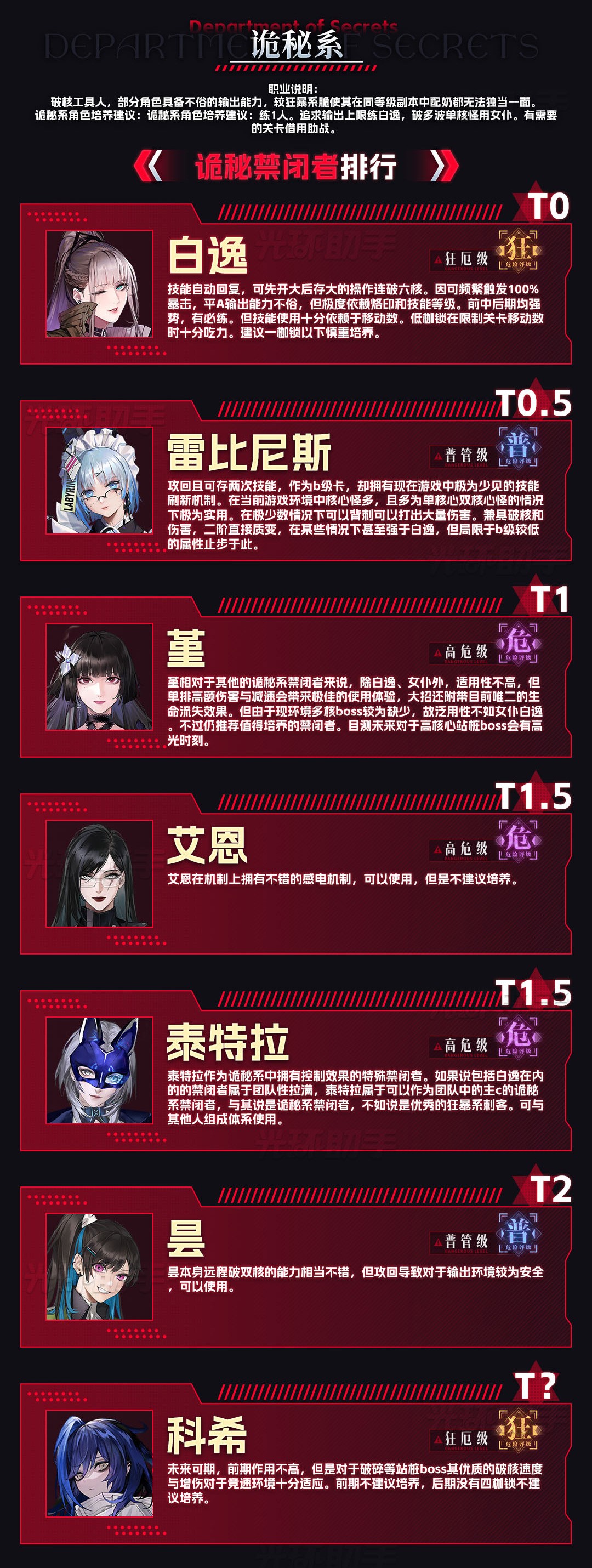 《无期迷途》禁闭者强度排行榜v3.0