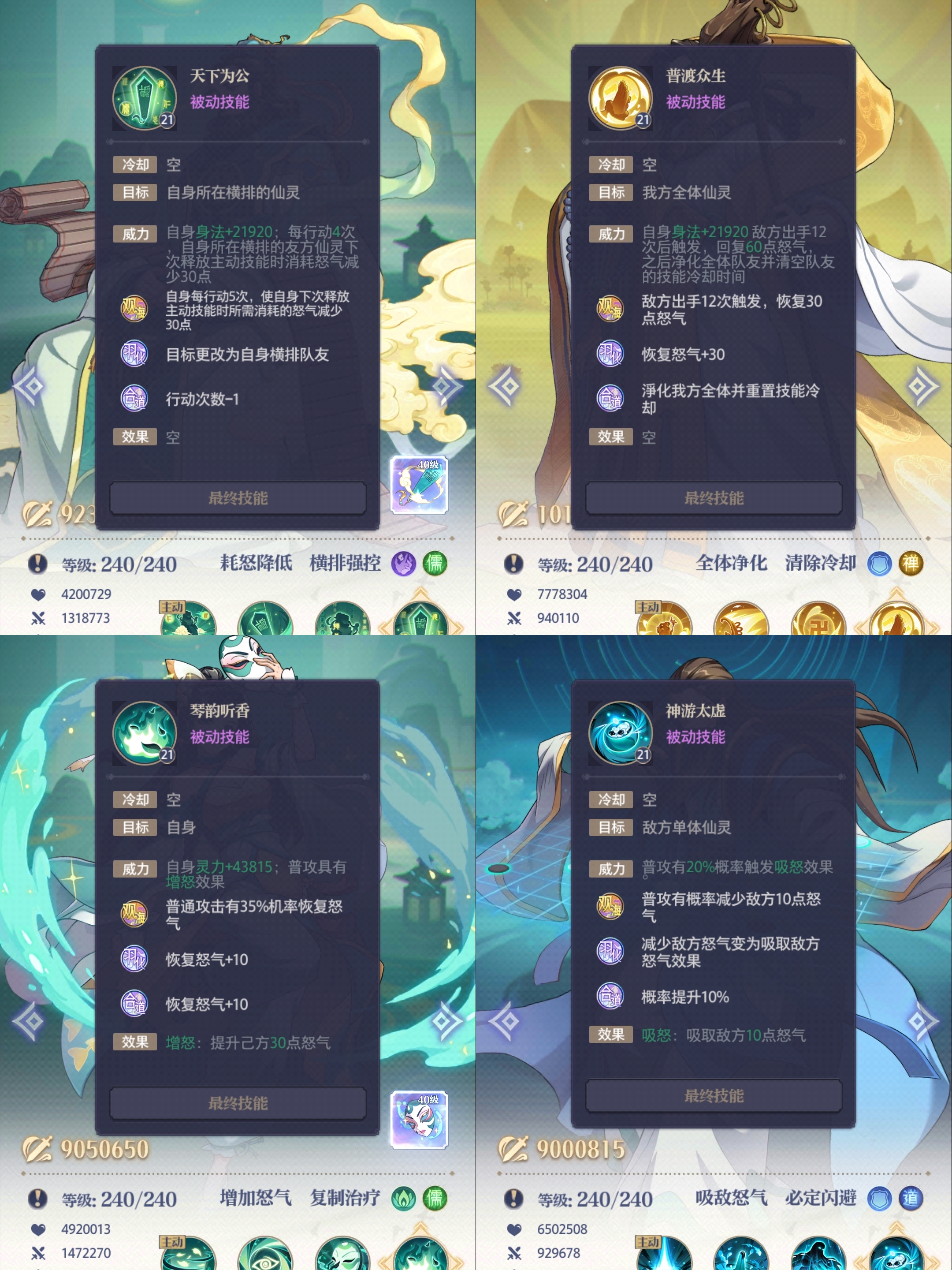 按照这个技能特点,我们可以围绕增加怒气、减少技能怒气消耗来组成阵容。