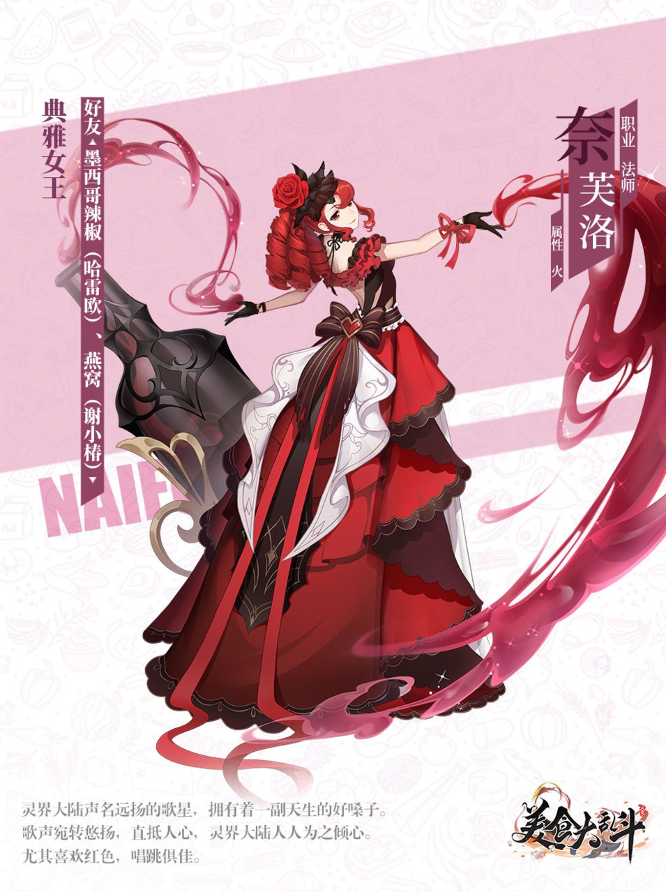 灵界大陆声名远播的著名歌星,有一副天生的好嗓子,歌声宛转悠扬,直抵人心,尤其喜欢红色,唱跳俱佳。