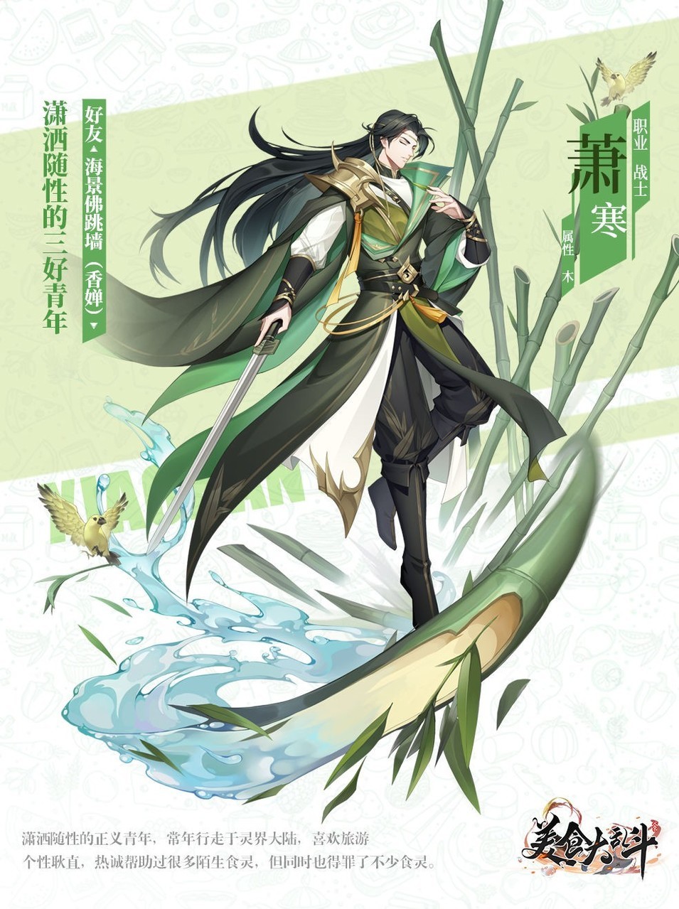 潇洒随性的正义青年,常年行走在灵界大陆,喜欢旅游,个性耿直,在帮助很多陌生食灵的同时,也得罪了不少其他食灵。