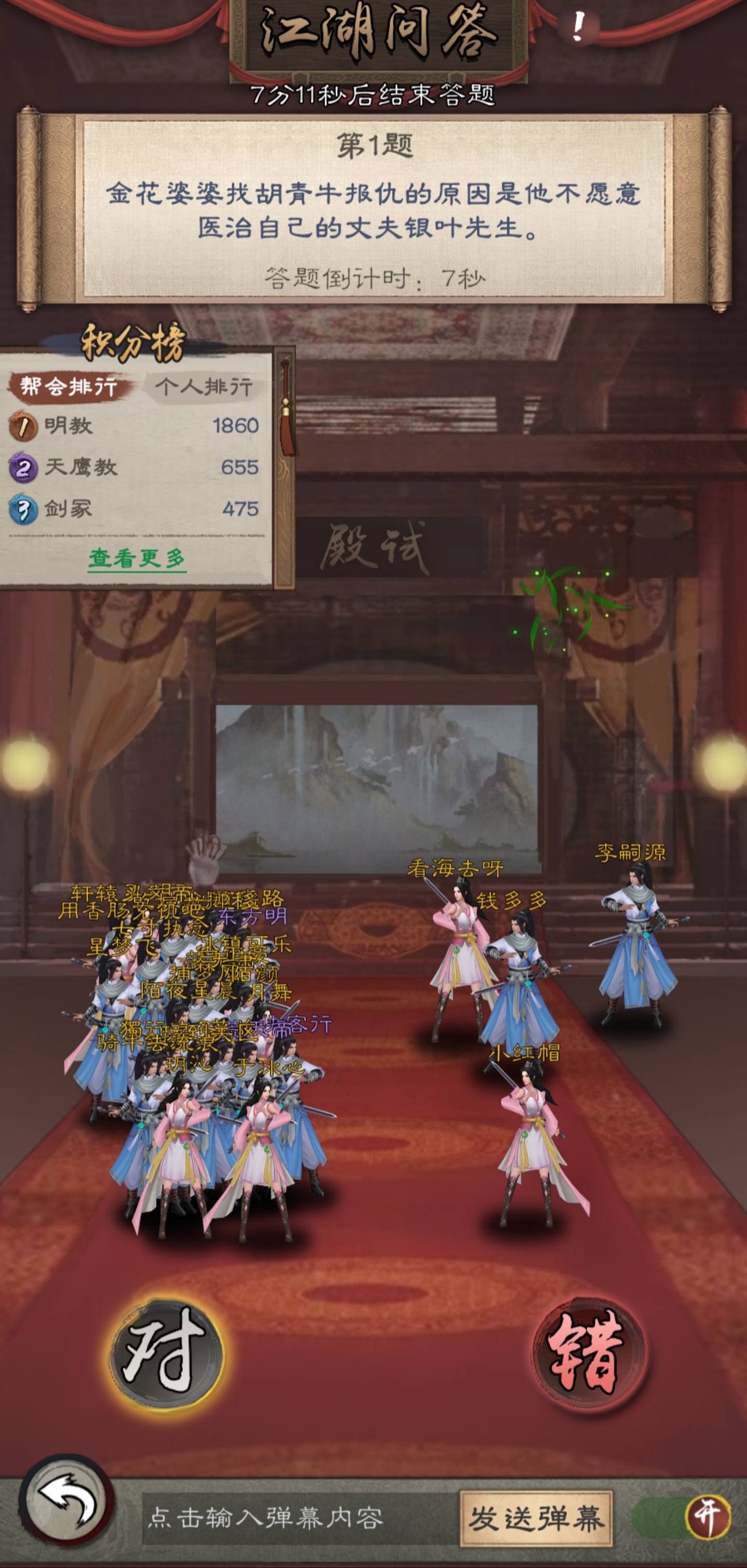 目前最新版本中一共有三个限时活动,分别是中午12:00的钓鱼,晚上18:00的江湖问答以及19:00的击杀江湖首领。