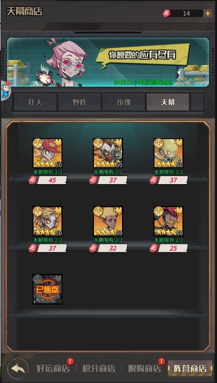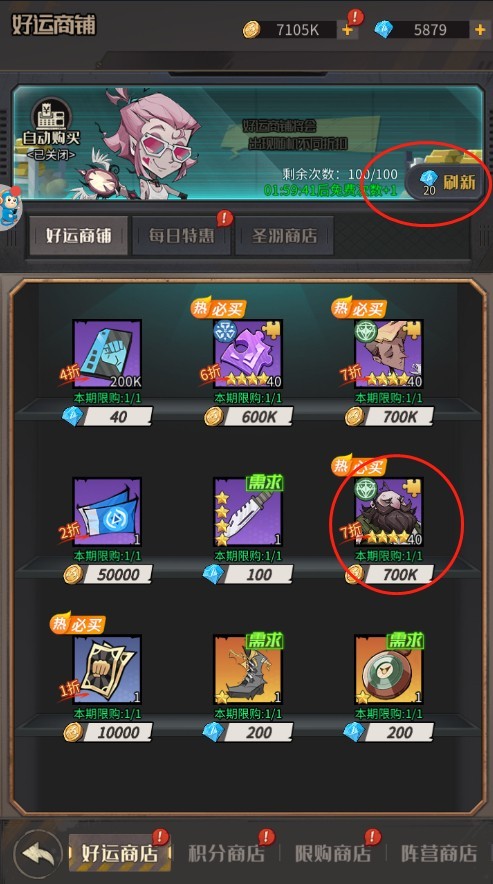 点进去商城神奇的大门就可以发现一个 好运商铺 刷到可用金币购买的4星狗粮卡、进阶凭证、挑战券、就买买 非常的简单金币挂机过图都可以拿到海量 反正刷到就是赚到