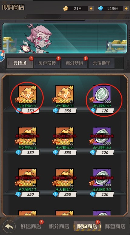 完成游戏各种任务就可以解锁的商店 使用平平无奇的钻石就可以拥有了哦 分四个板块 竞技场 废弃荒楼 迷幻梦境 永夜地牢