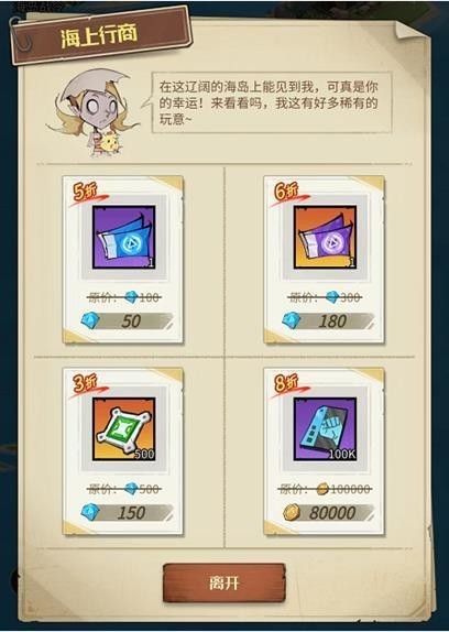 海上商人:前往该海岛可以遭遇海上商人,商人持有丰富的折扣道具。