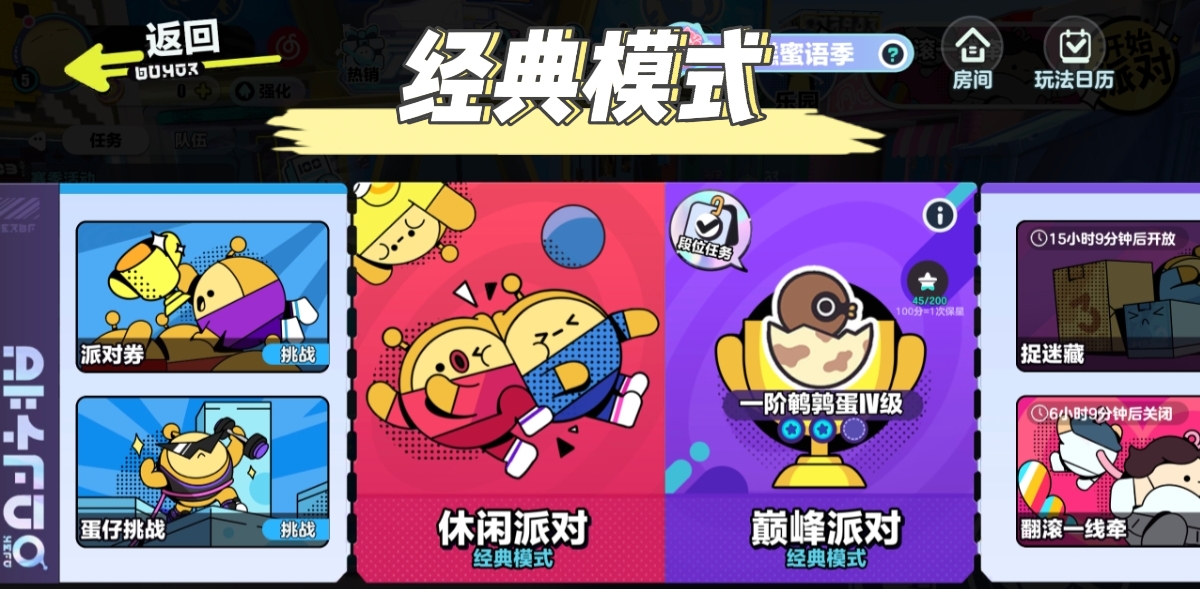 分为“休闲派对”和“巅峰派对”⏰⏰⏰