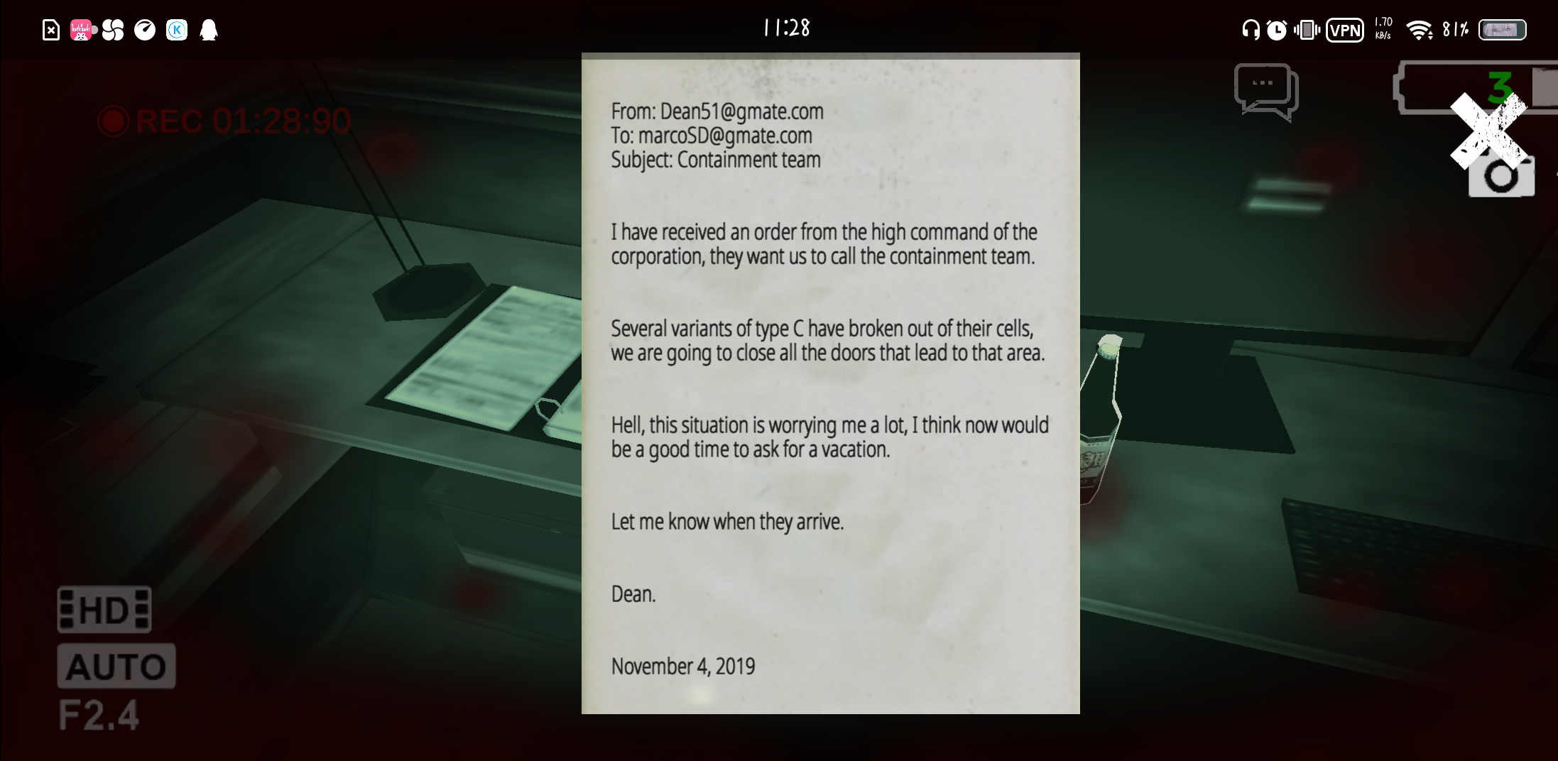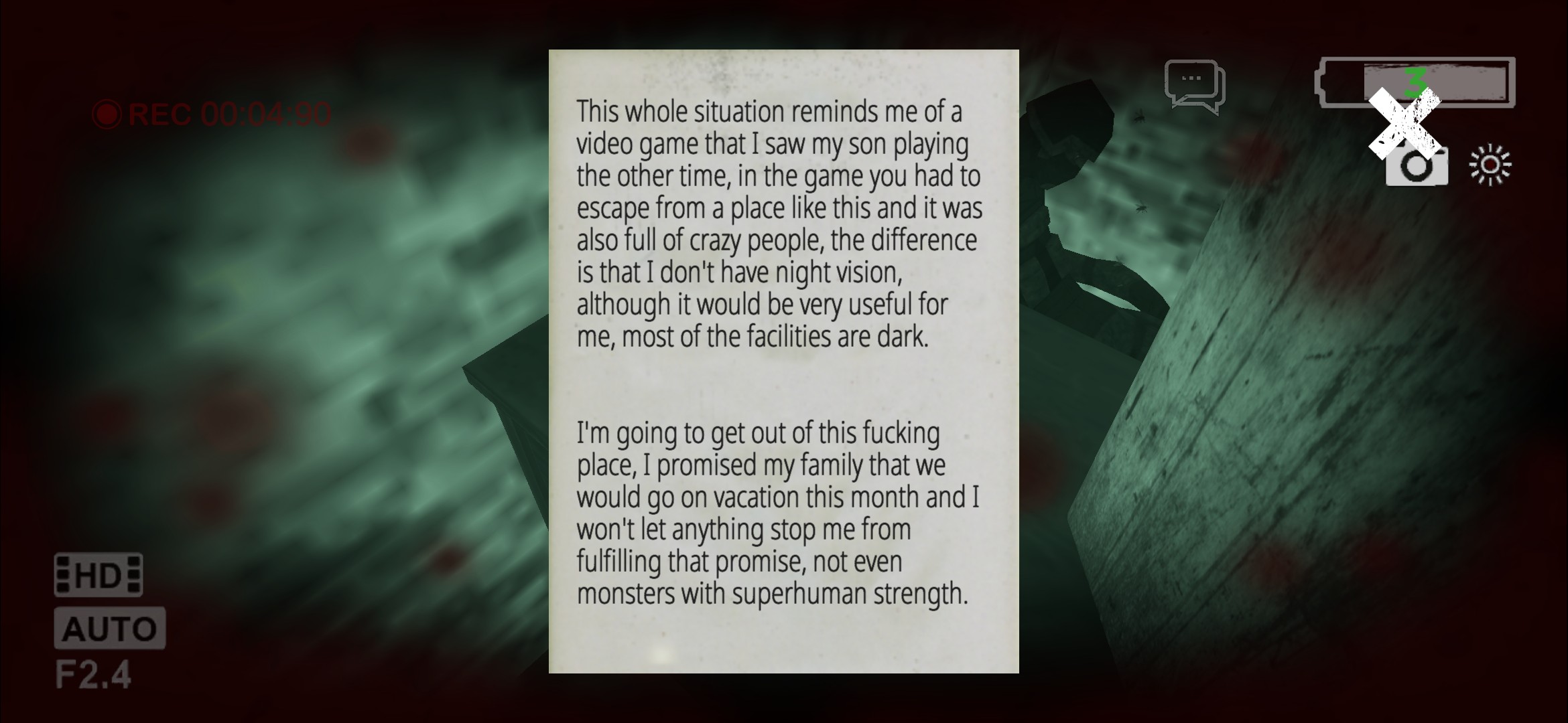 建议:在开夜视仪的时候可以同时拿枪或武器否则一片摸黑看不见不知道打哪里;多弄点指引,不然我感觉会迷路