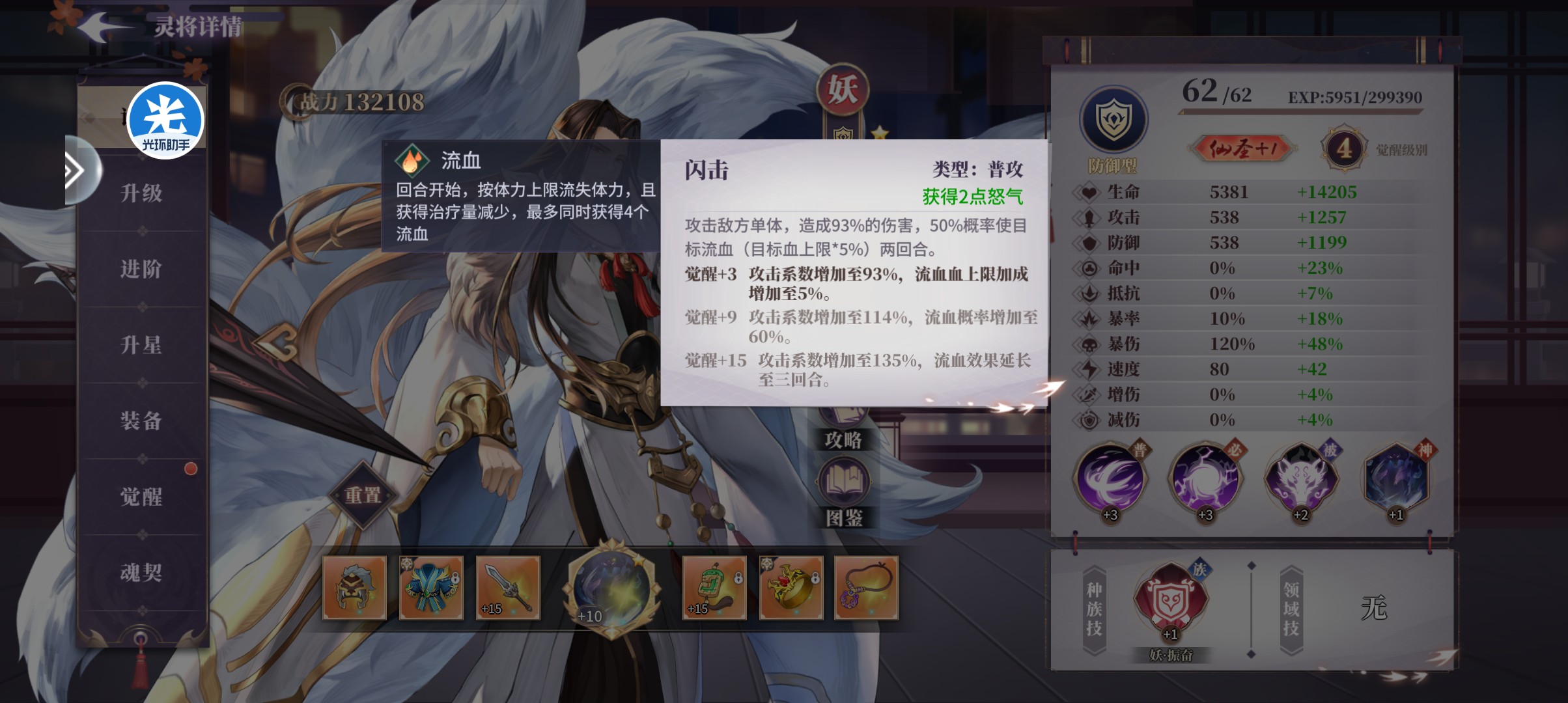 狐尊普攻和必杀都可以造成目标流血(回血效果减少50%)进一步限制白虎的被动回血效果