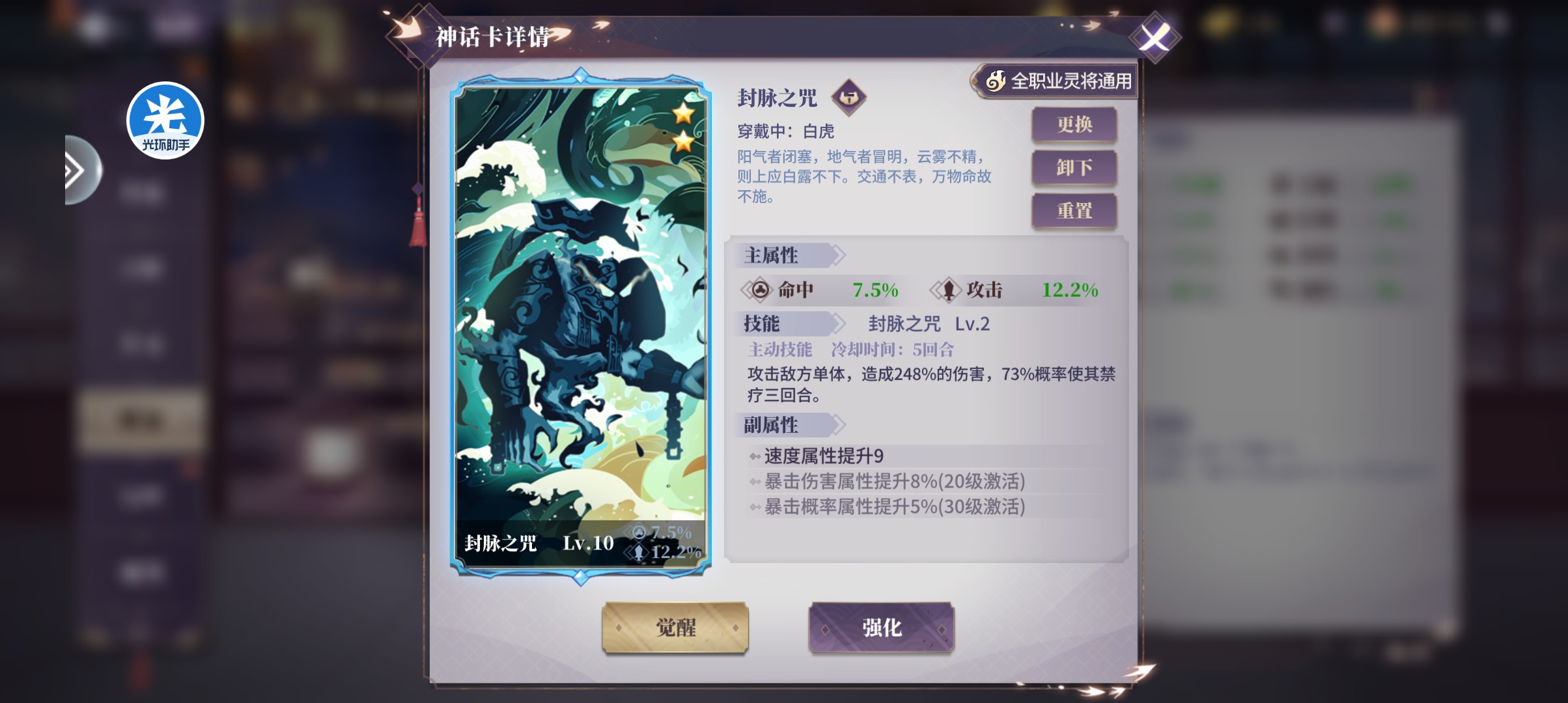作为通用型神话卡,并不是随便拿一个灵将就可以携带的,这里推荐给一些低攻击的辅助灵将使用,避免被对方的白虎神话卡和被动效果嘲讽