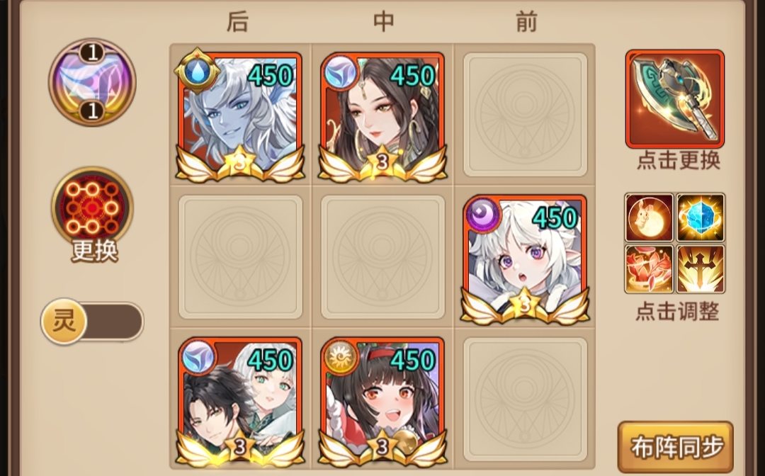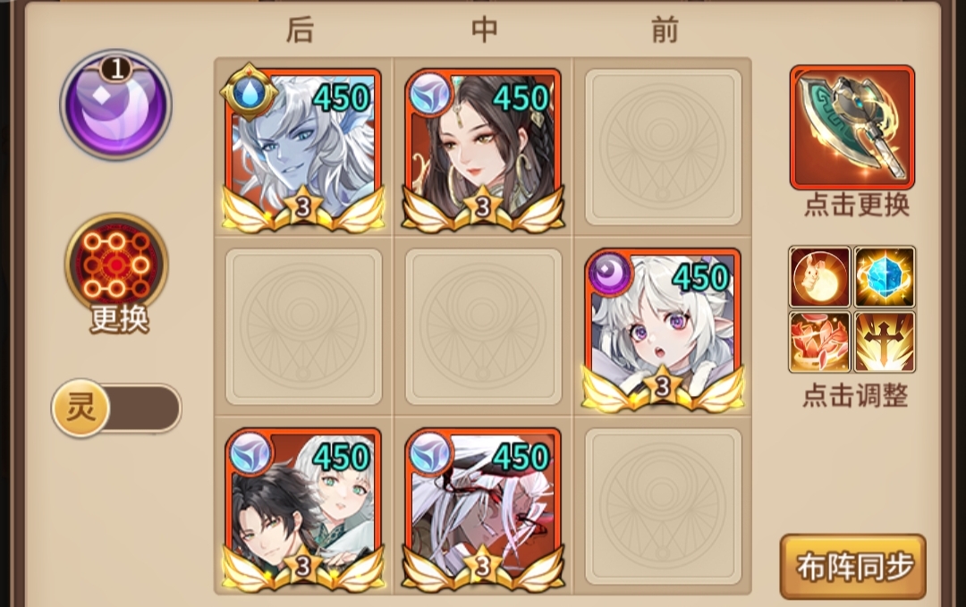 我们也可以通过使用魔盘古替换天照来增强队伍的坦度,魔盘古的破甲buff以及本身具备的无视防御伤害也够压低敌方血线。