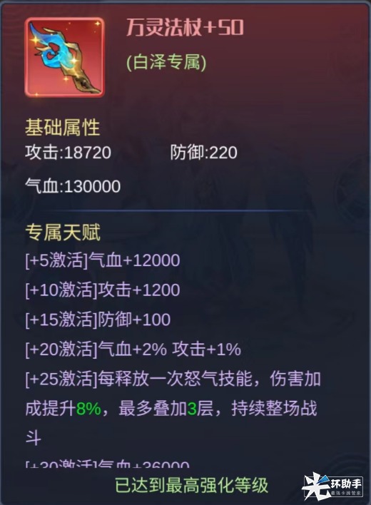 强化50级:每释放一次怒气技能,伤害加成提升12%,最多叠加3层,持续整场战斗