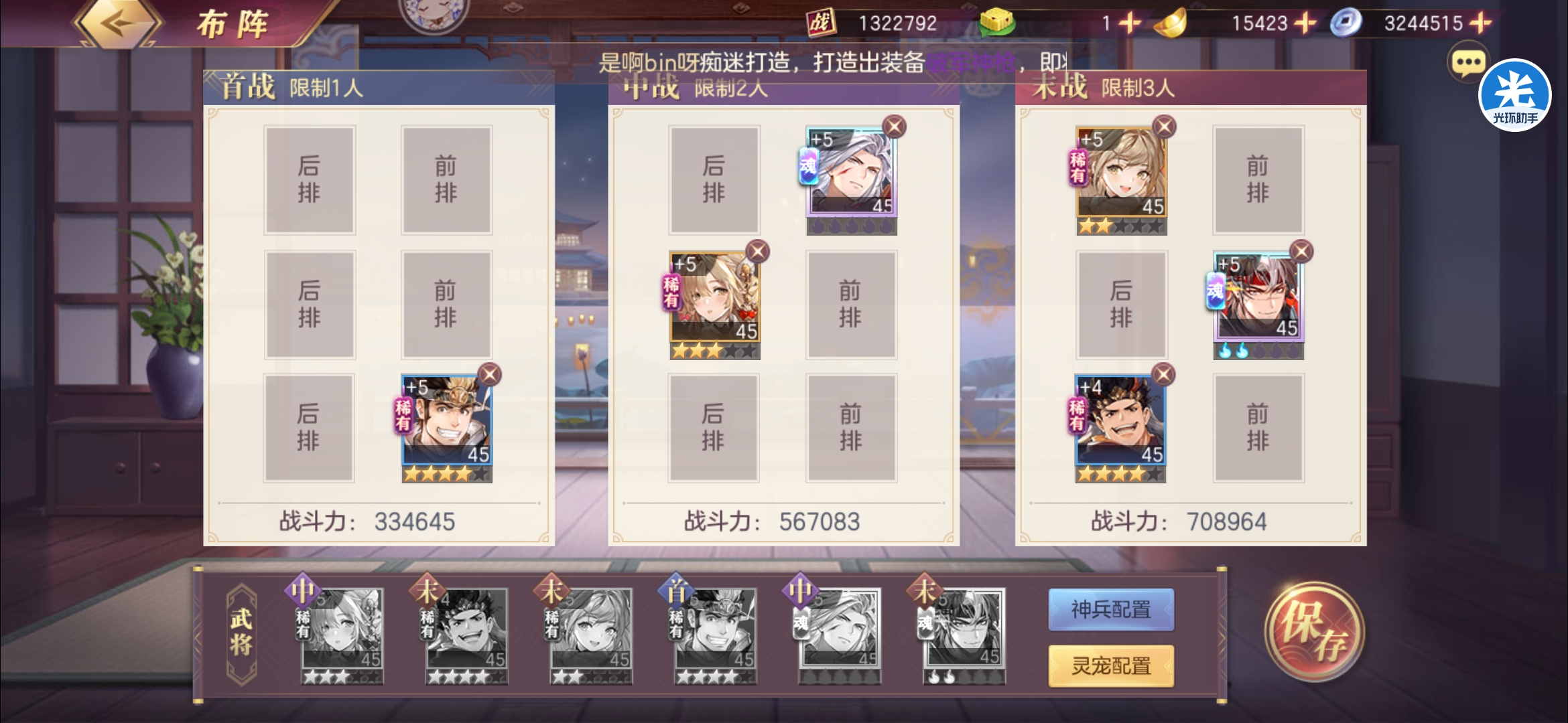 这里就粗略的讲一下黄天秘境达成通过条件的武将选择以及站位吧(仅凭印象,想到哪儿写到哪儿,有卡关的还是直接带图评论):以此号的武将配置来说