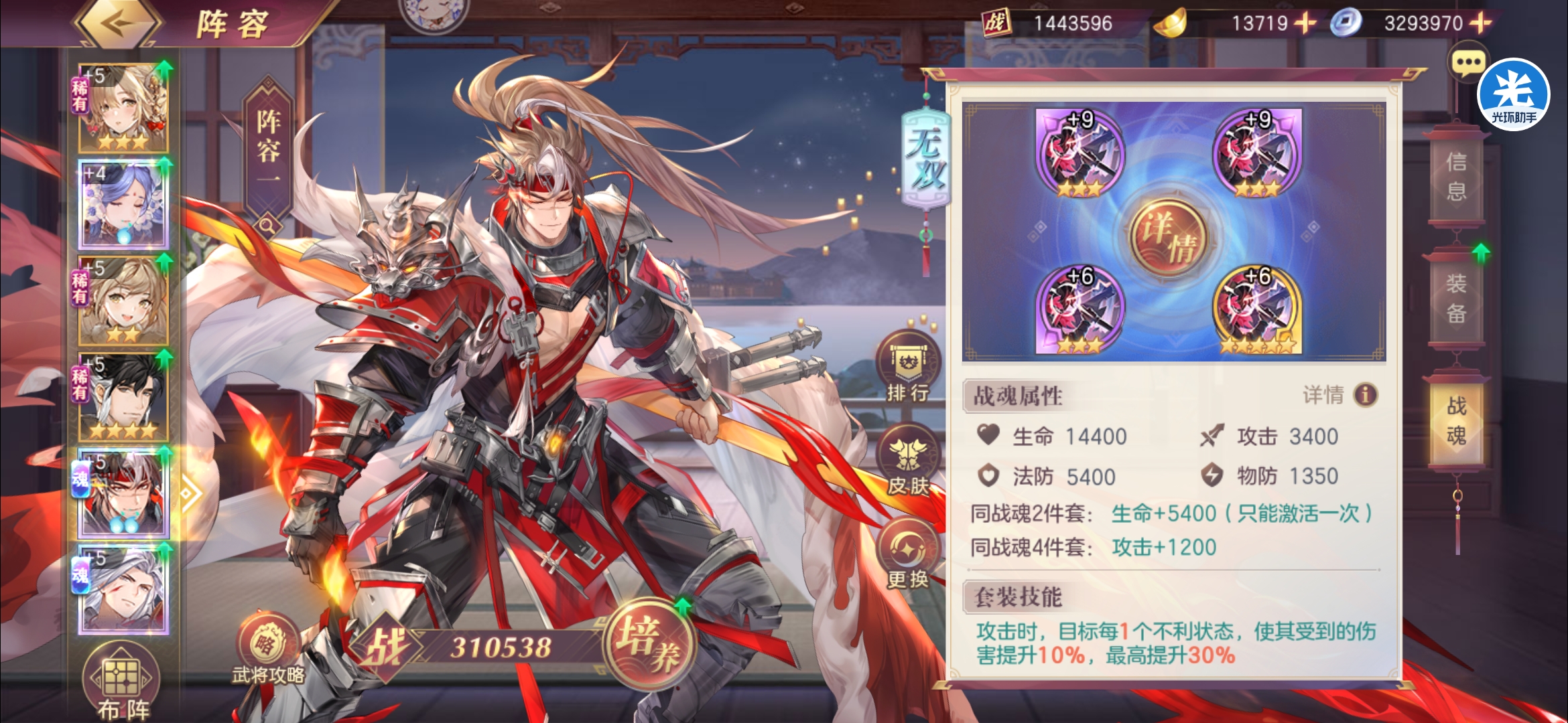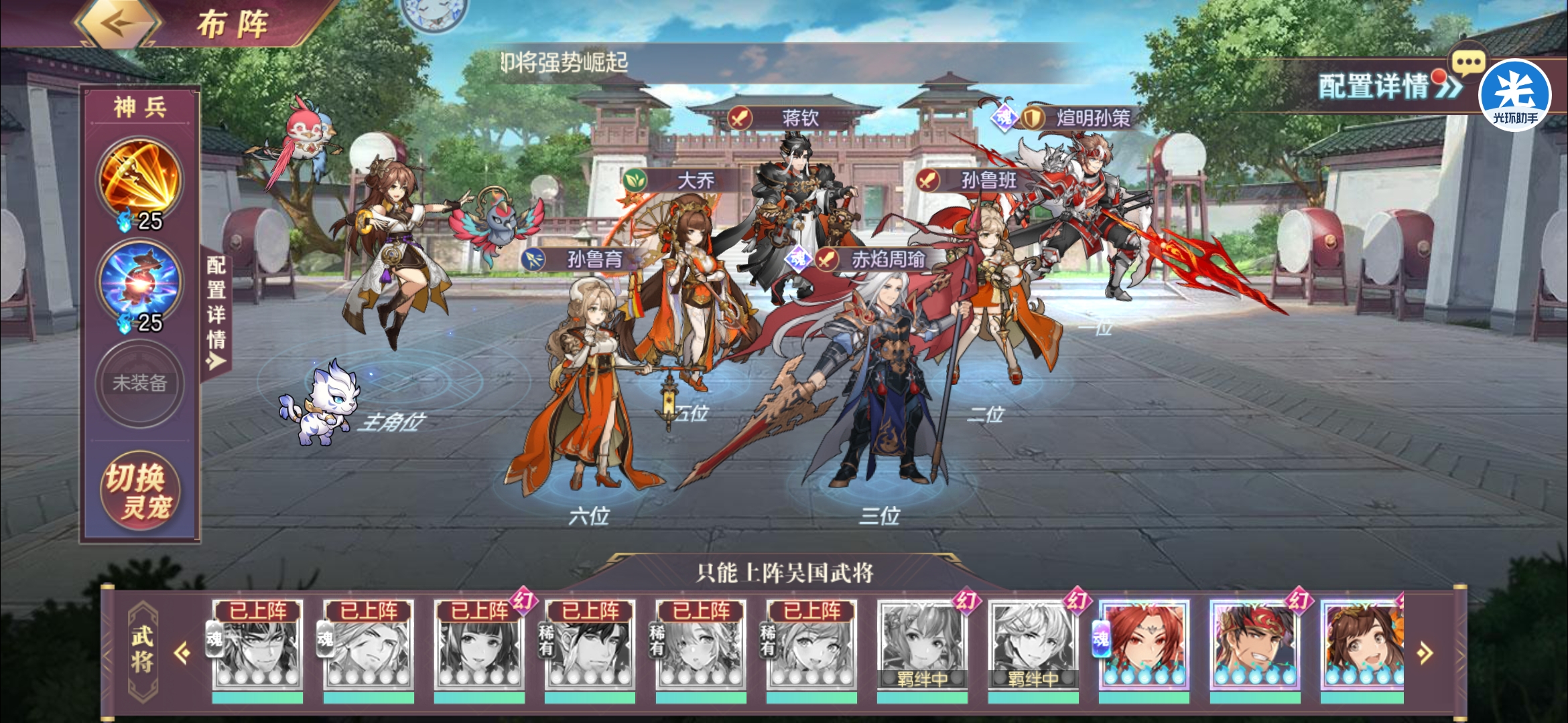 注意此阶段这套阵容成立的基本条件是蒋钦站位在赤焰周瑜之前,之后拿到瀚雪张辽会再更新。