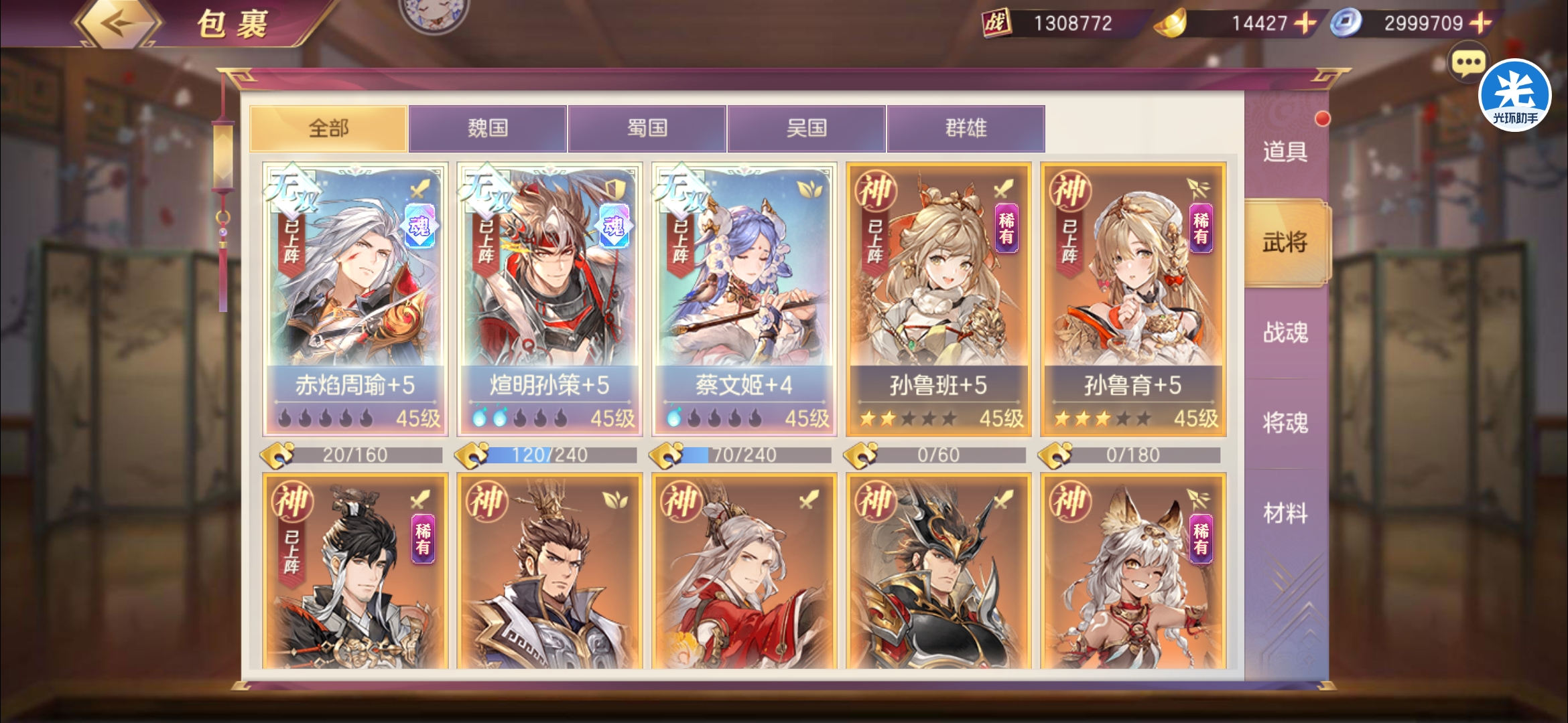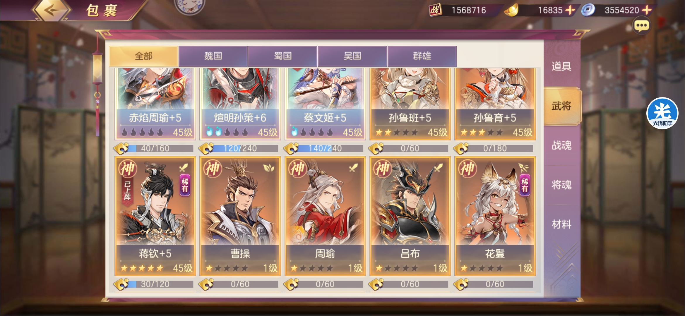 最好装备和战魂给邢道荣和赤焰周瑜。