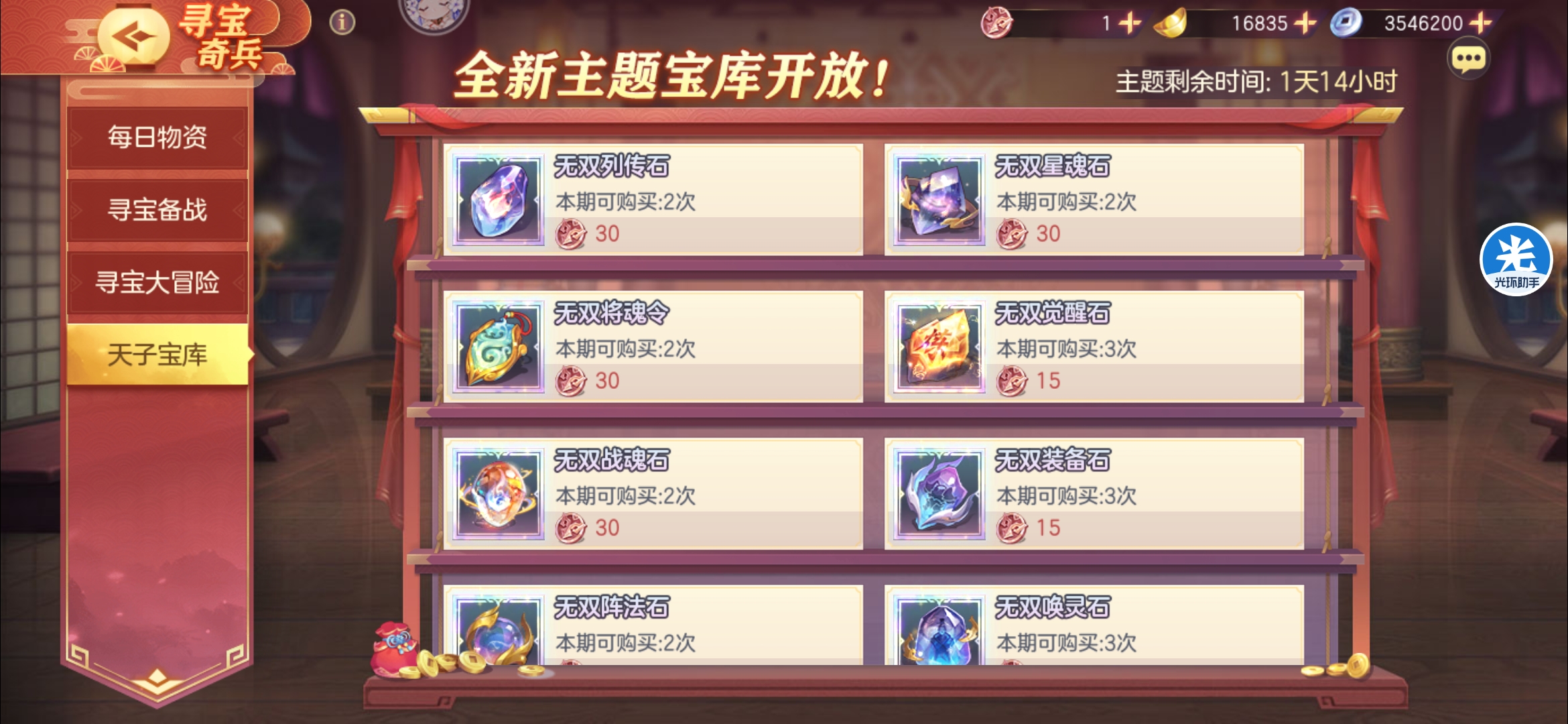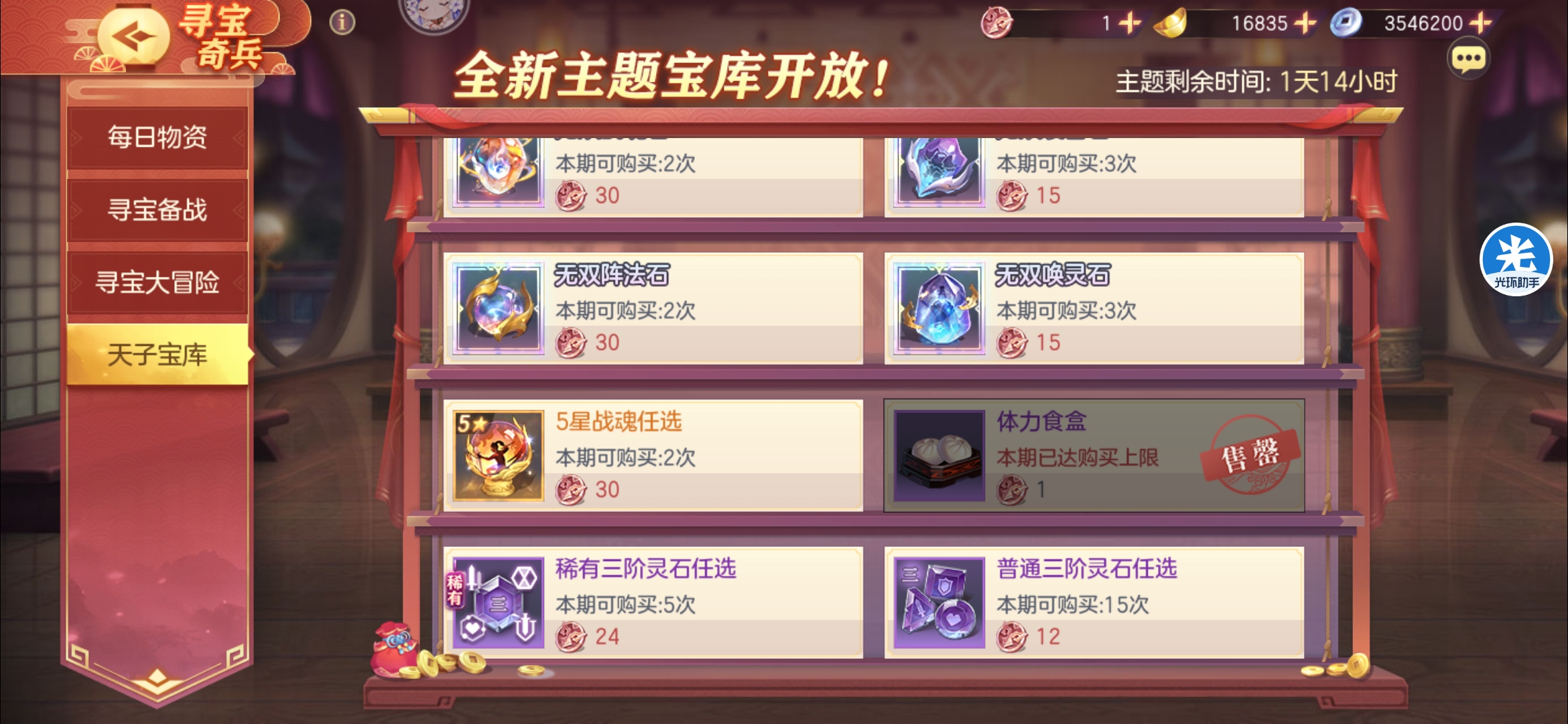 这一期是灵石夺宝,不要花元宝,因为随机灵石很容易开出普通的,很亏。