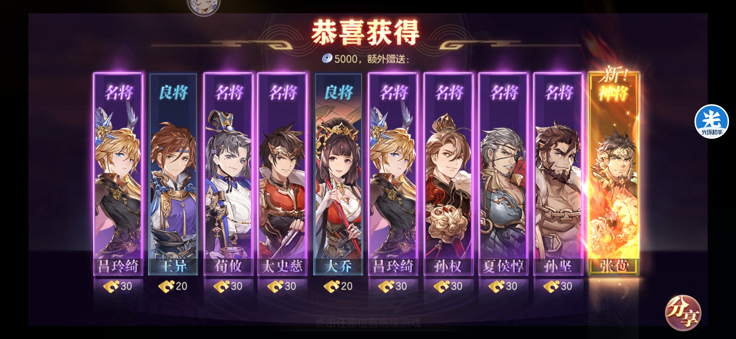 元宝也可以开始囤起来了,我们尽量在第十天就攒够三万元宝直接出一火张辽,毕竟急着用。