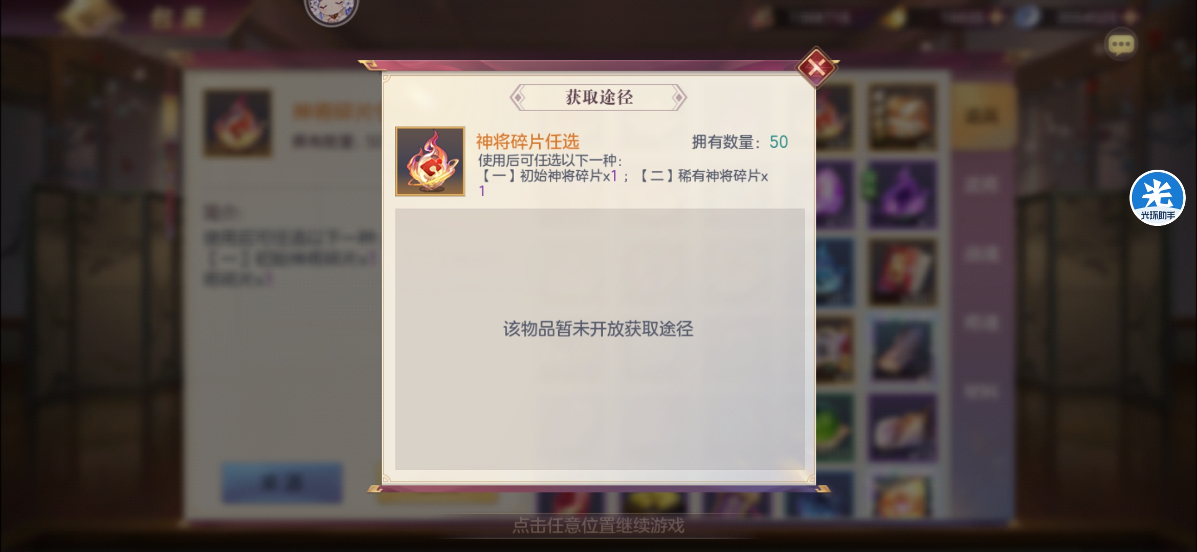 另外背包里还留了260的神将碎片不急着开,等到三神将到关键星级缺一两只的时候再去使用。