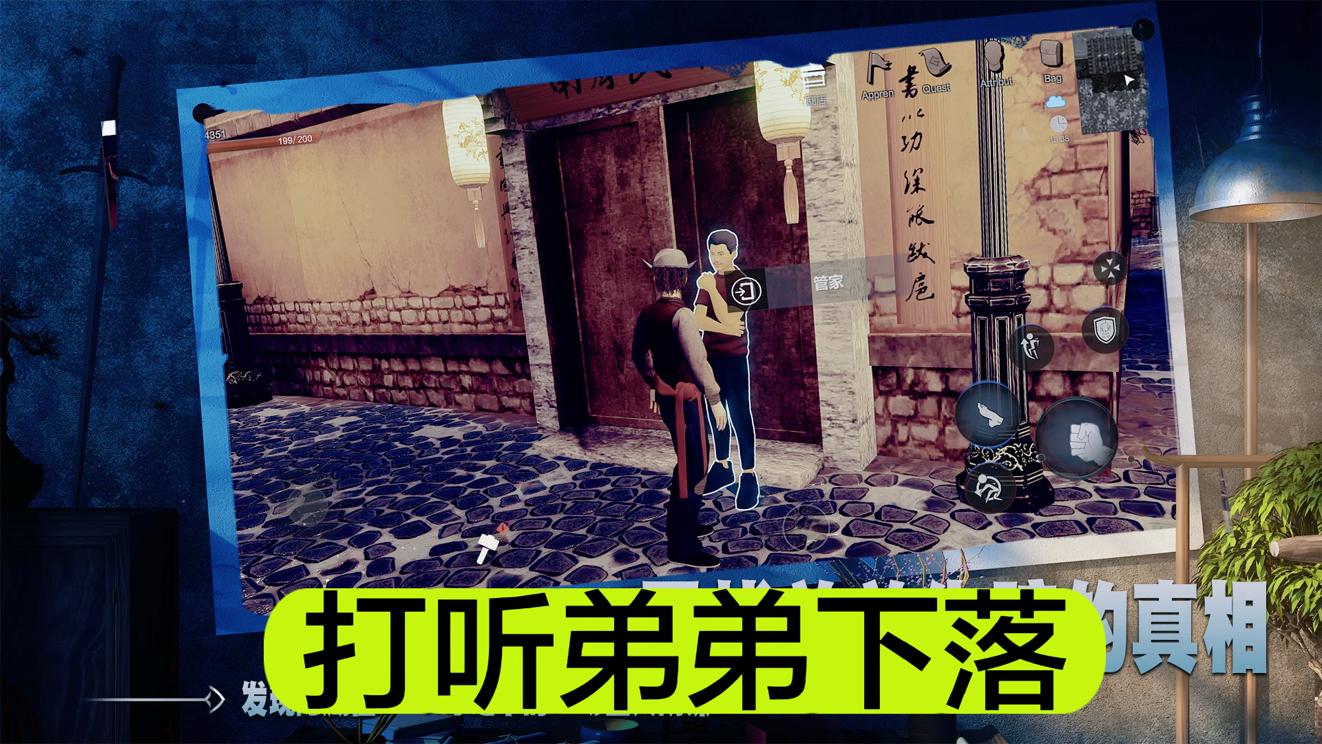 🗣游戏中玩家将扮演胡真,在k-city中收徒授业一边自创门派🎓,一边收集线索寻找弟弟的踪迹▶️。同时还要带领徒弟们通过挑战武馆来提升自己的实力✊,通过踢馆击败敌人,从而粉碎K城背后的黑暗势力🥋。
